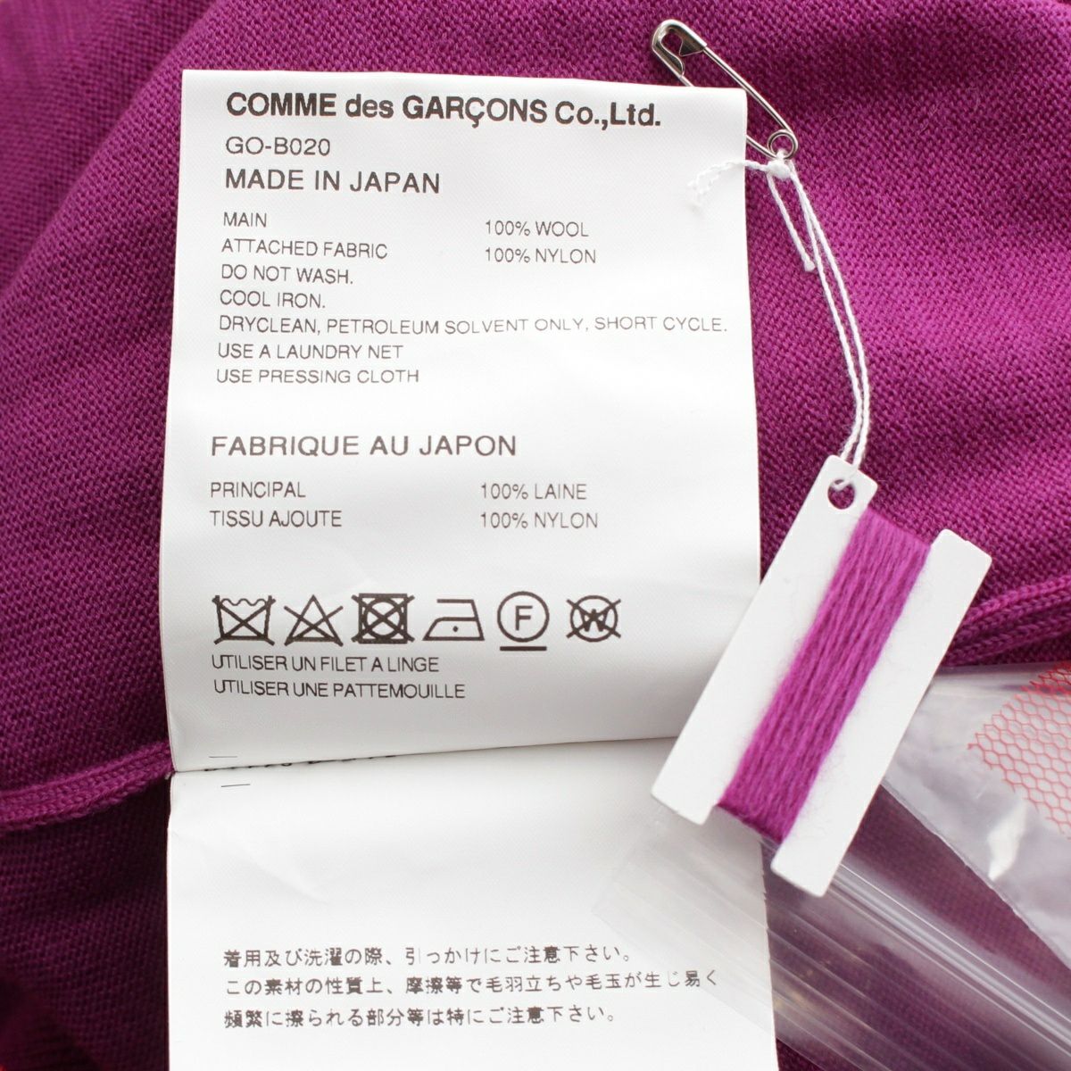 コムデギャルソン AD2024 25SS メッシュレイヤード ニット カーディガン トップス GO-B020 レッド パープル XS