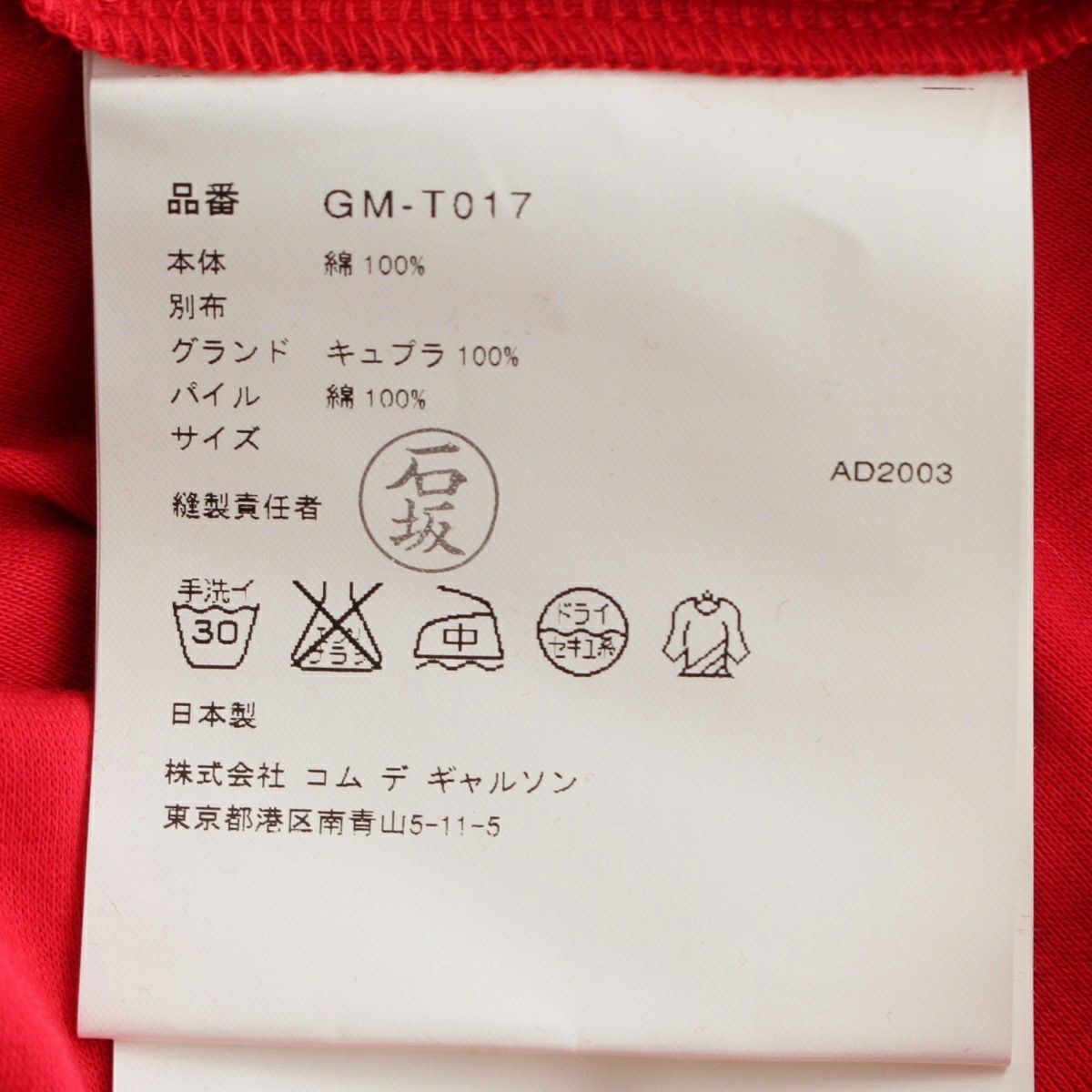コムデギャルソン AD2003 04SS コットン アーカイブ 羽 異素材 切替 カットソー トップス GM-T017 レッド ‐
