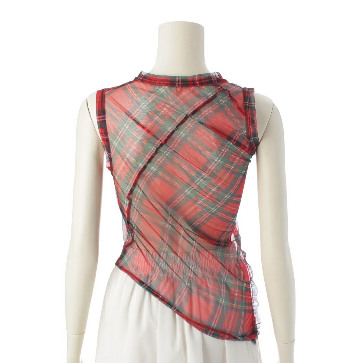 コムデギャルソン バイアス タータンチェック 変形 シアー ワンピース トップス レッド S
