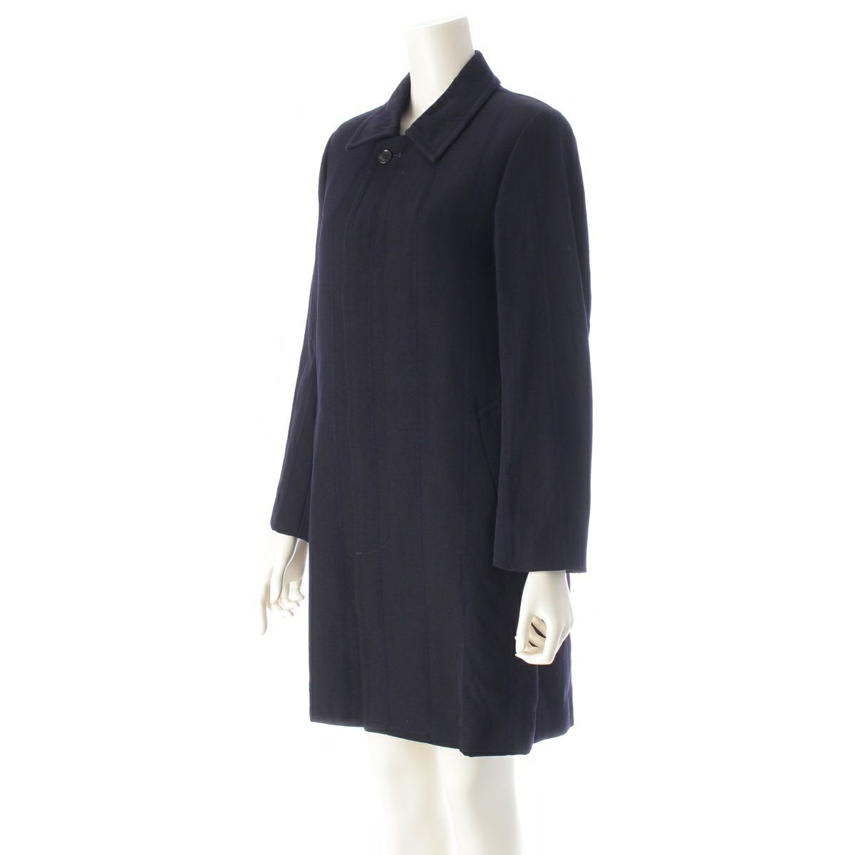 コムデギャルソン AD2001 ウール ストライプ 刺繍 ミディアム ステンカラーコート アウター GC-C014 ネイビー S