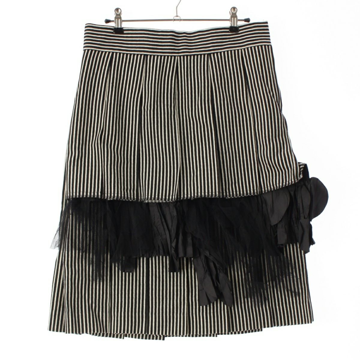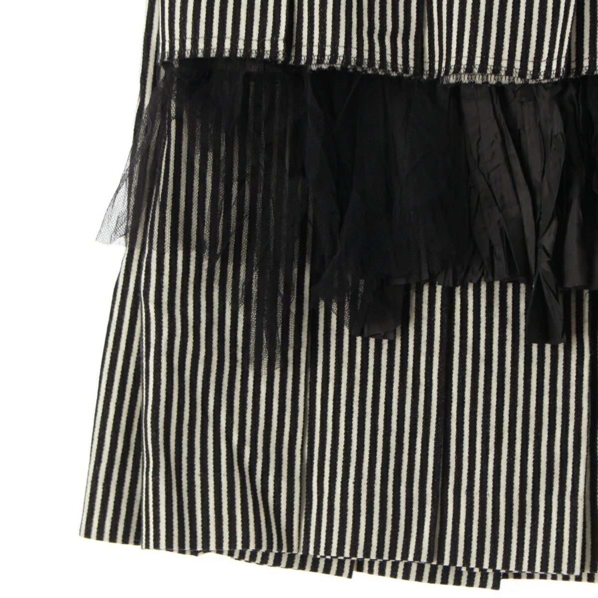 コムデギャルソン AD2004 ウール フリルデザイン ストライプ タック スカート ボトムス GN-S017 ホワイト×ブラック S