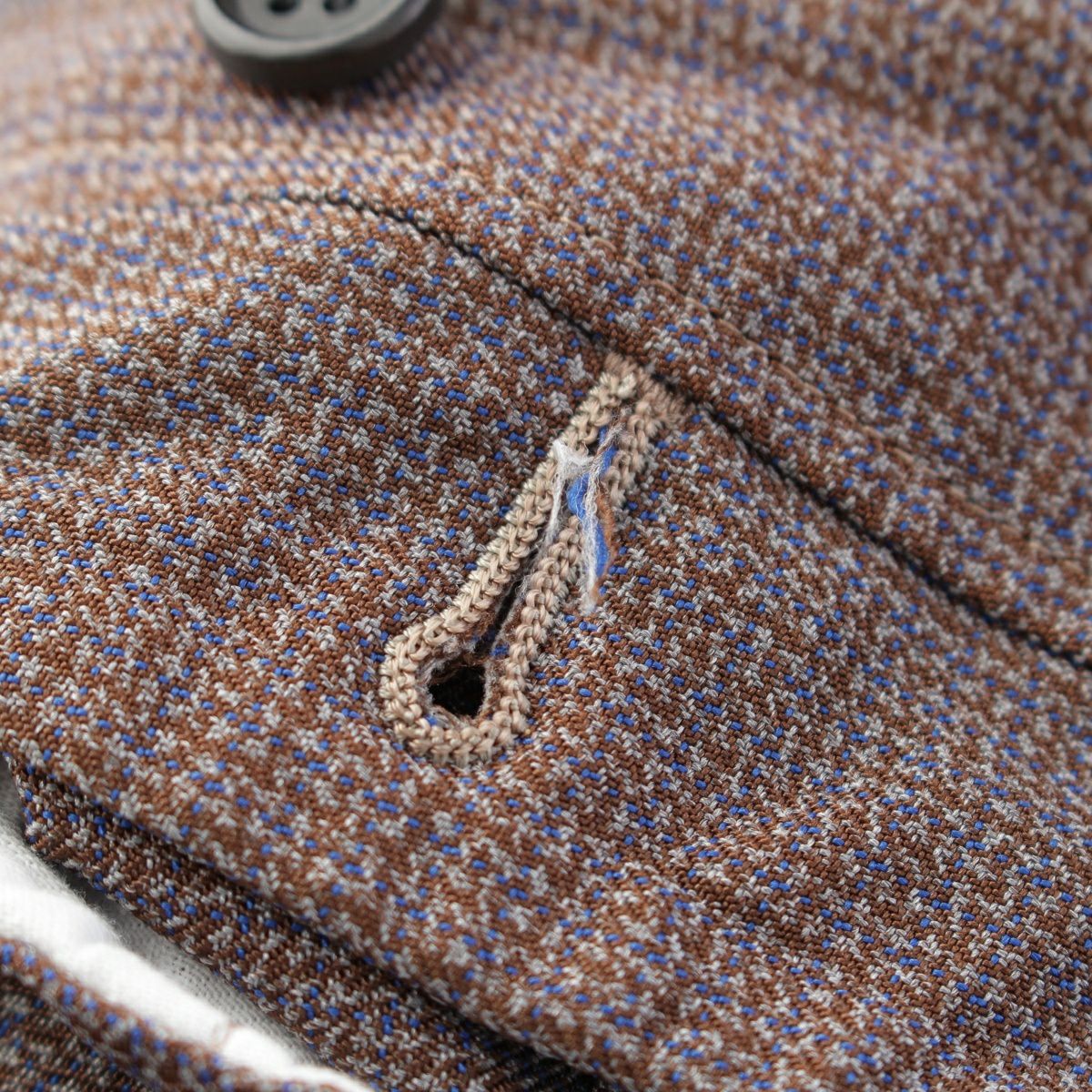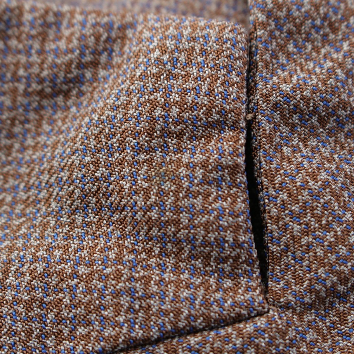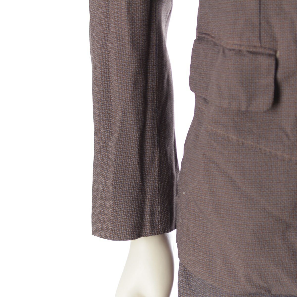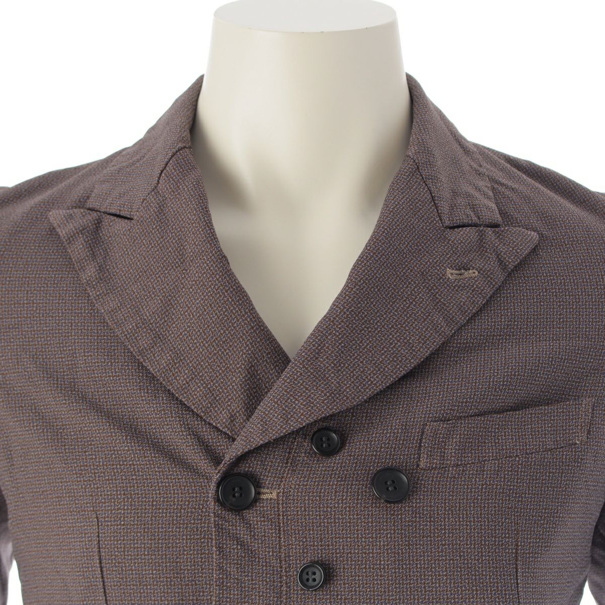 ダメージ箇所: ジャケット表面に汚れ/毛羽立ち、ジャケット内側に汚れ/縫製取れ、パンツ内側に汚れ/縫製取れ、ボタンに擦れ/傷、タグに汚れ/毛羽立ち、保管臭のようなニオイ ※ジャケットとパンツの色味に違いあり