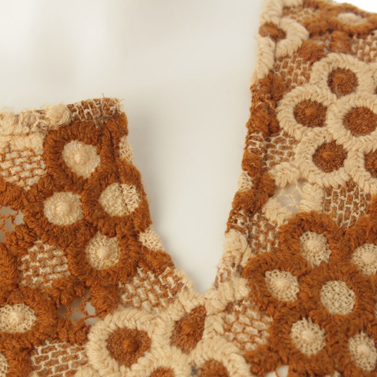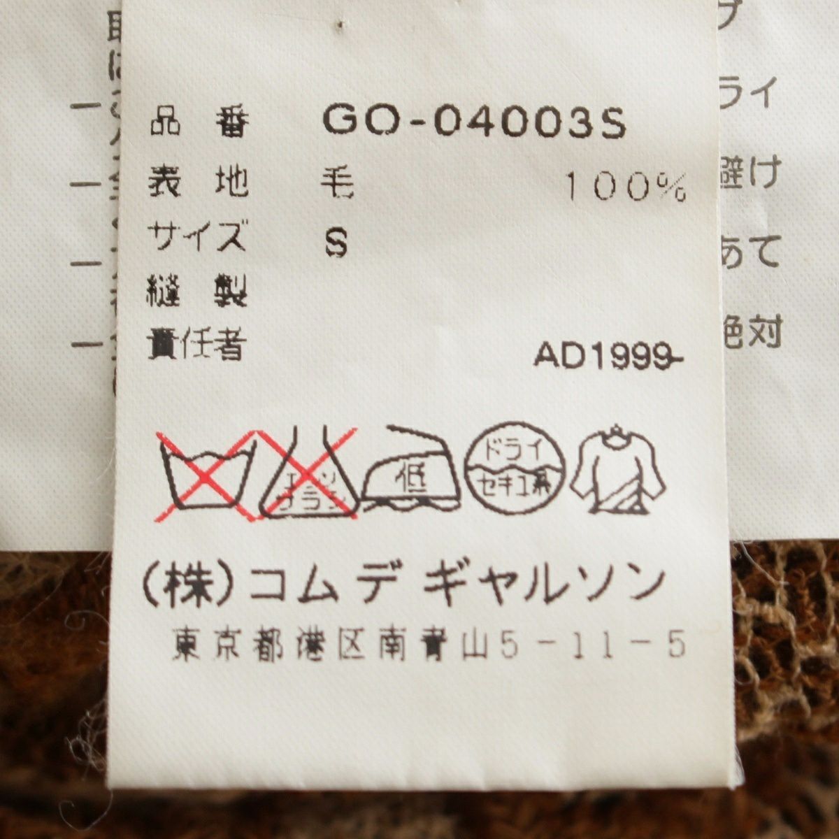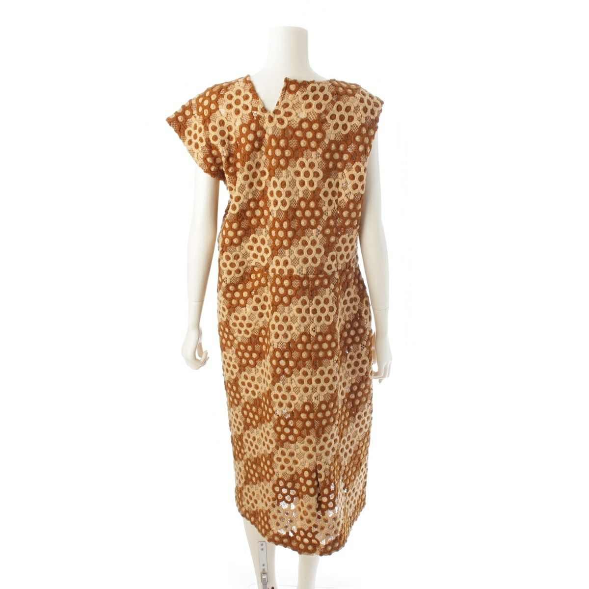 コムデギャルソン AD1999 ウール 総レース フラワー 刺繍 デザイン ノースリーブ ワンピース GO-04003S ブラウン系 S
