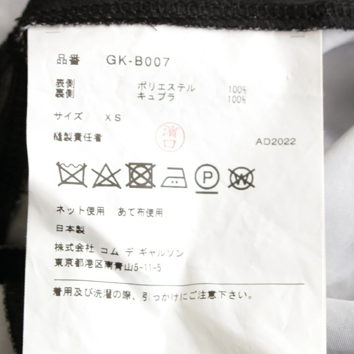 コムデギャルソン AD2022 23SS 接着加工 ベスト トップス GK-B007 ブラック XS