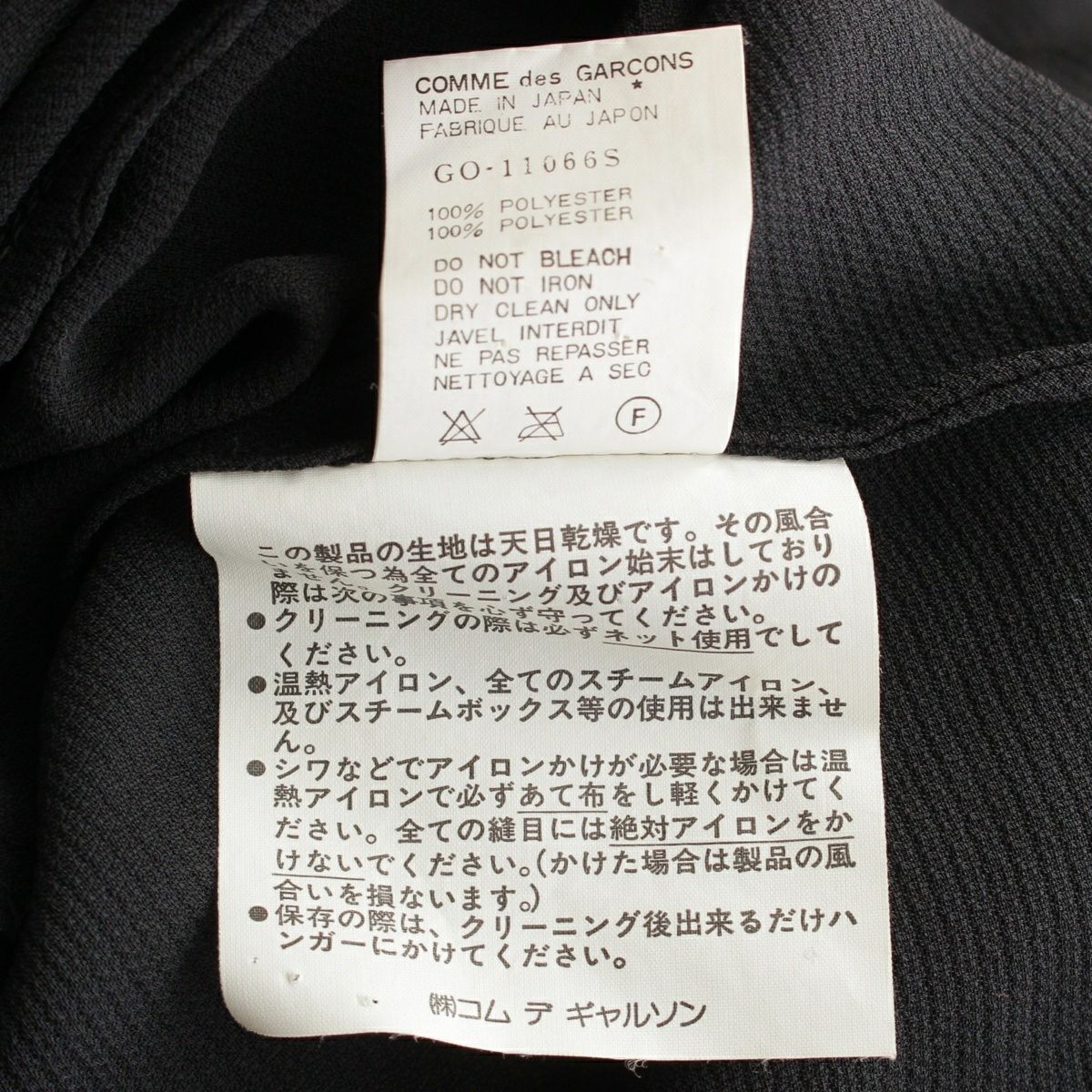 コムデギャルソン AD1992 裾変形 ノースリーブ ワンピース GO-11066S ブラック S