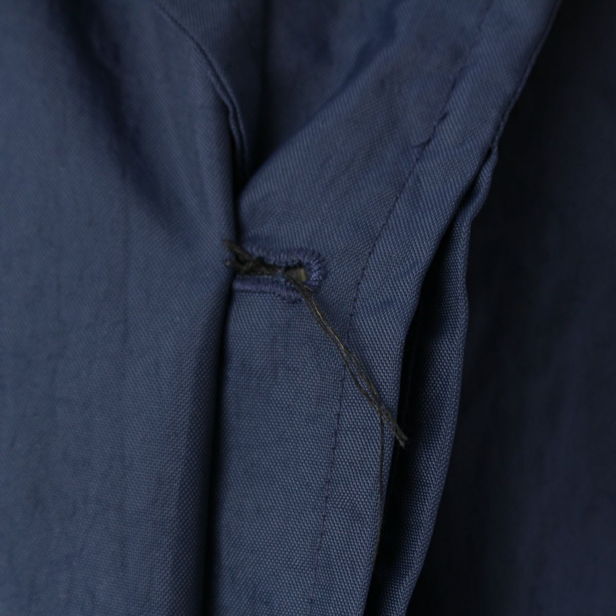 ダメージ箇所: 第一ボタンに縫製解れ、背面左上部に擦れ/毛羽立ち、保管臭のようなニオイ