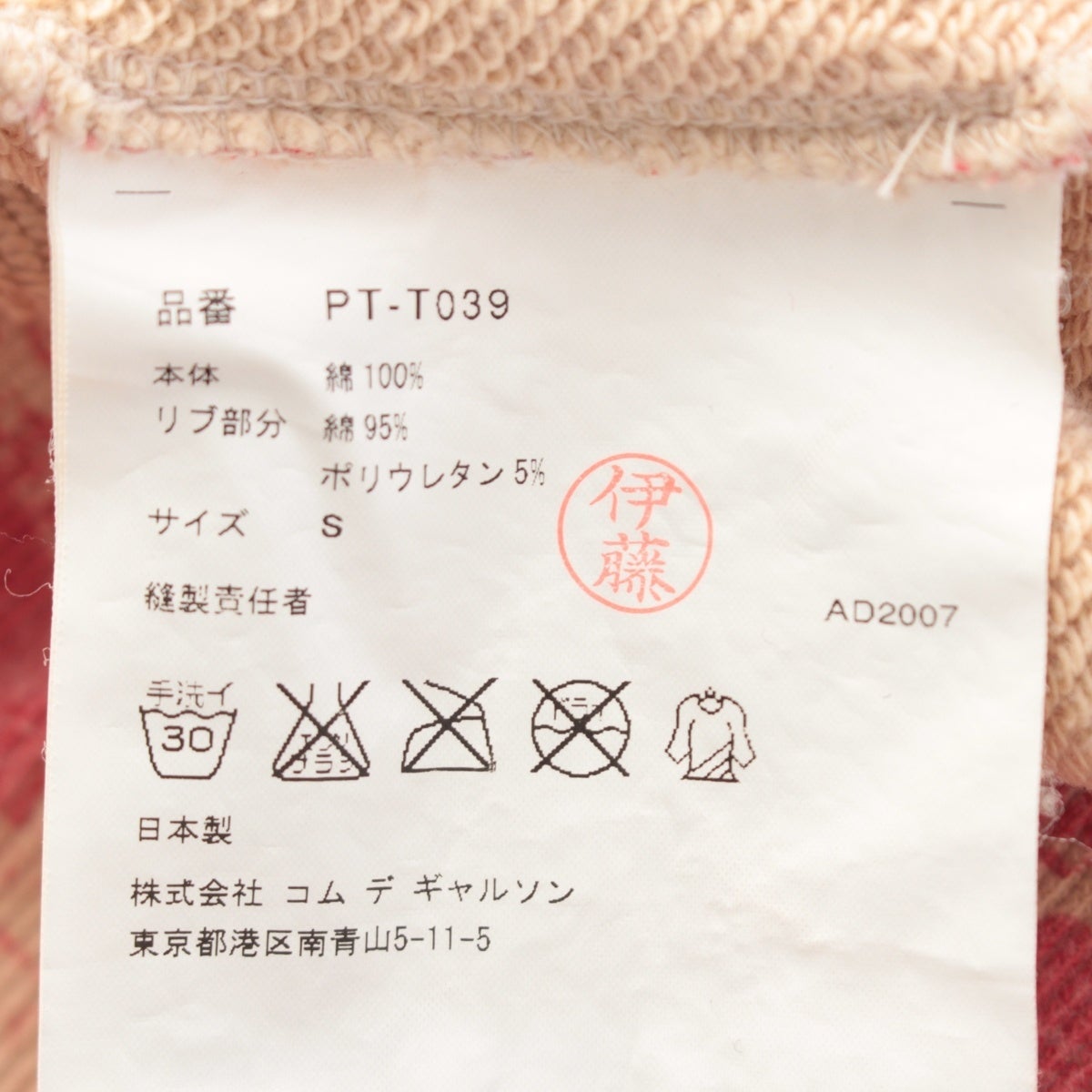 コムデギャルソンオムプリュス AD2007 07AW ブロックプリント ヴィンテージ調 スウェット トップス PT-T039 ベージュ レッド S
