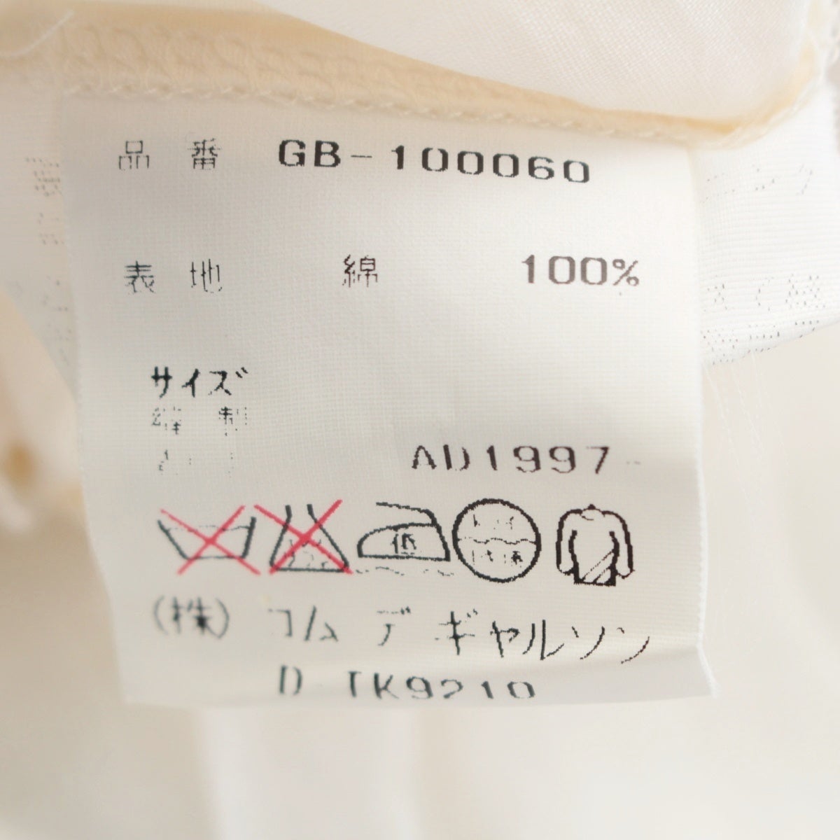 コムデギャルソン AD1997 98SS コットン クラリスタリング シアー サイドジップ シーチングトップ トップス ビューティー GB-100060 オフホワイト ホワイト