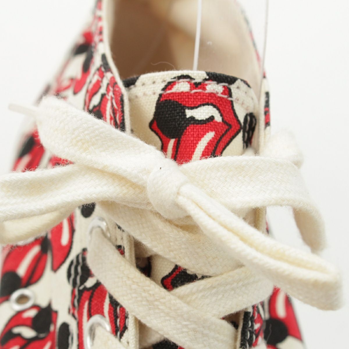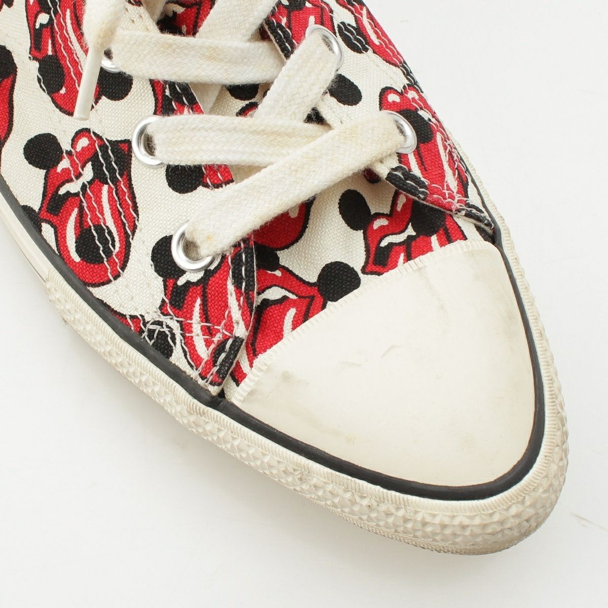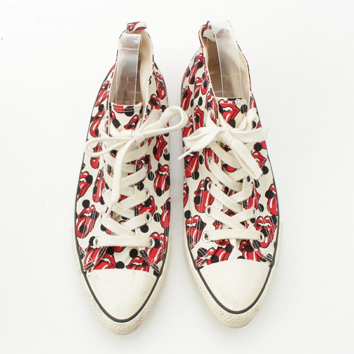コムデギャルソンオムプリュス ローリングストーンズ キャンバス 総柄 スニーカー シューズ ホワイト レッド