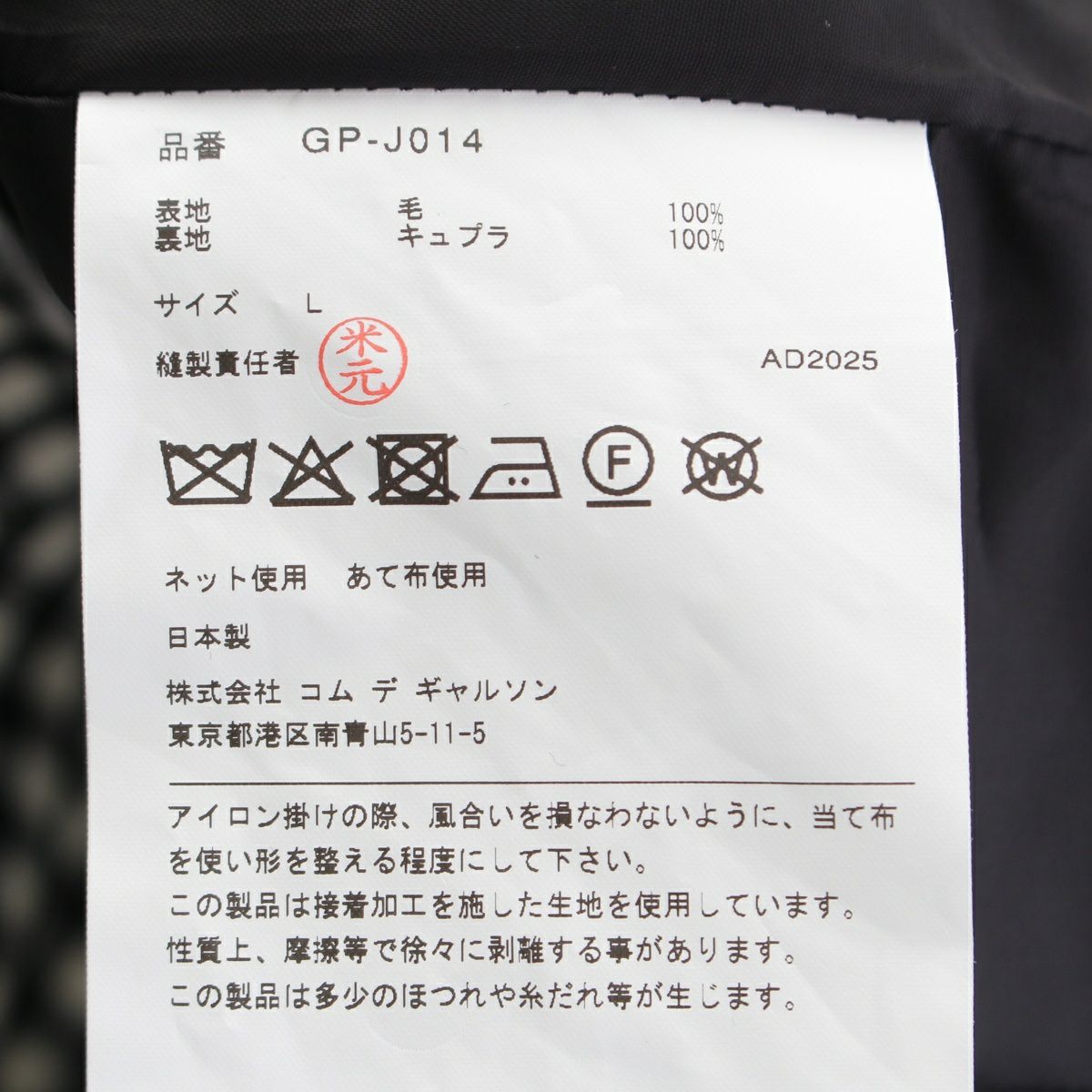コムデギャルソン 25AW AD2025 ウール デザイン ホール カット 切りっぱなし テーラードジャケット GP-J014 ブラック×ホワイト L
