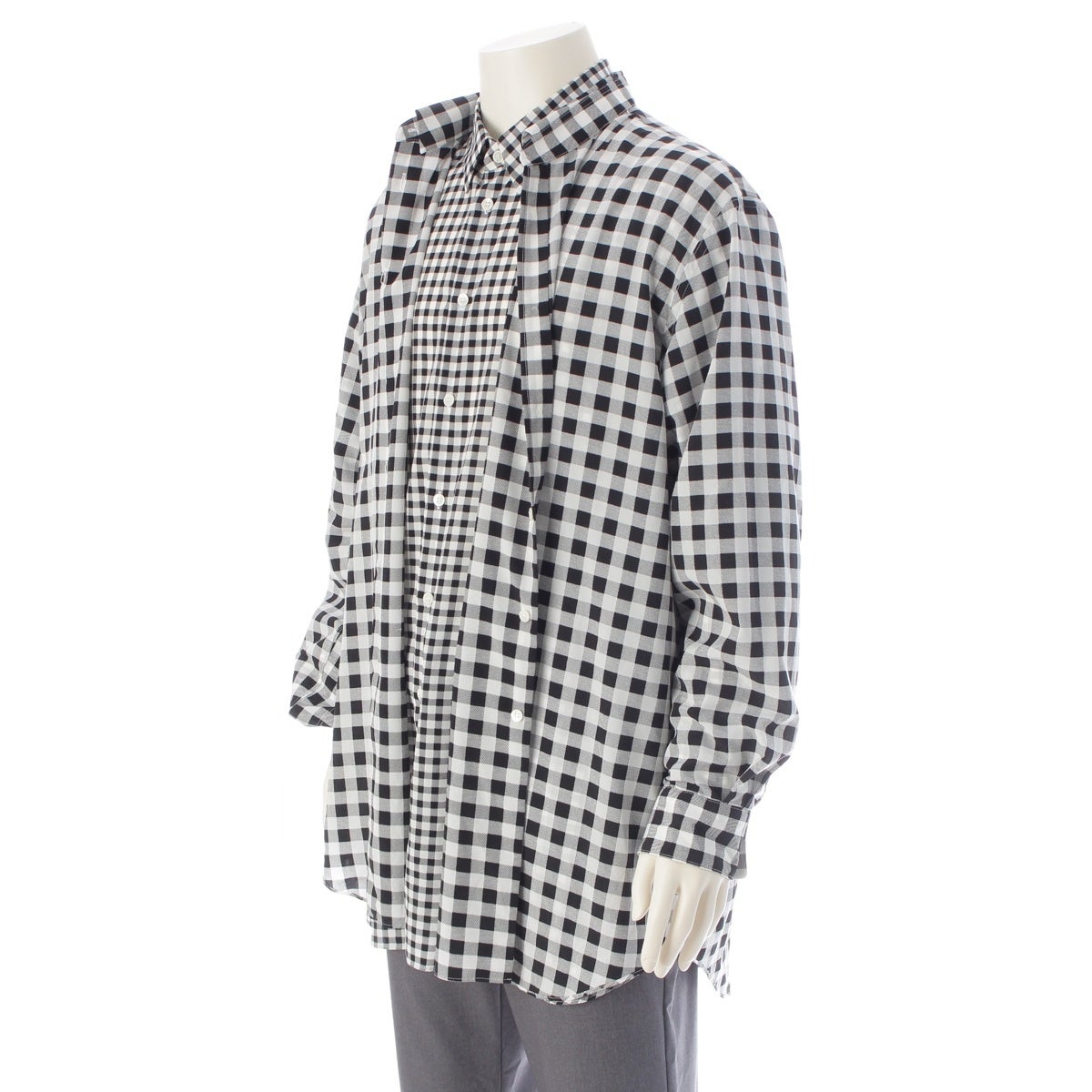 コムデギャルソン 25AW AD2025 2重 デザイン チェック 長袖シャツ GP-B003 ホワイト ブラック S