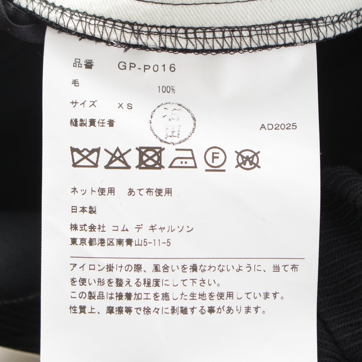 コムデギャルソン AD2025 25AW ウール デザインポケット サルエルパンツ ボトムス GP-P016 ブラック XS