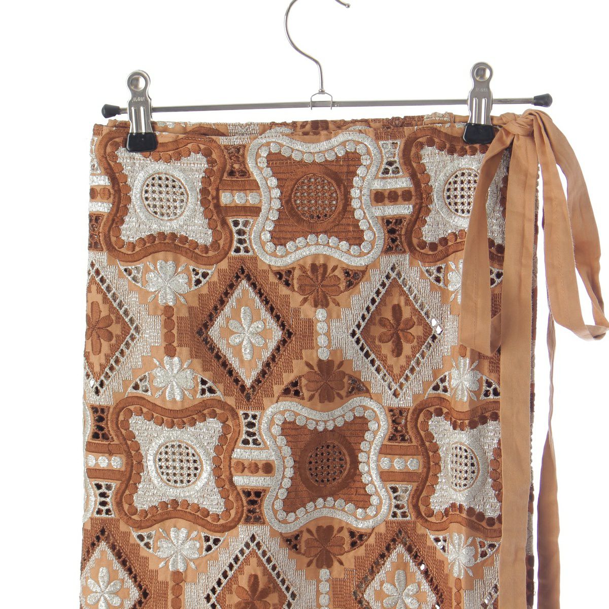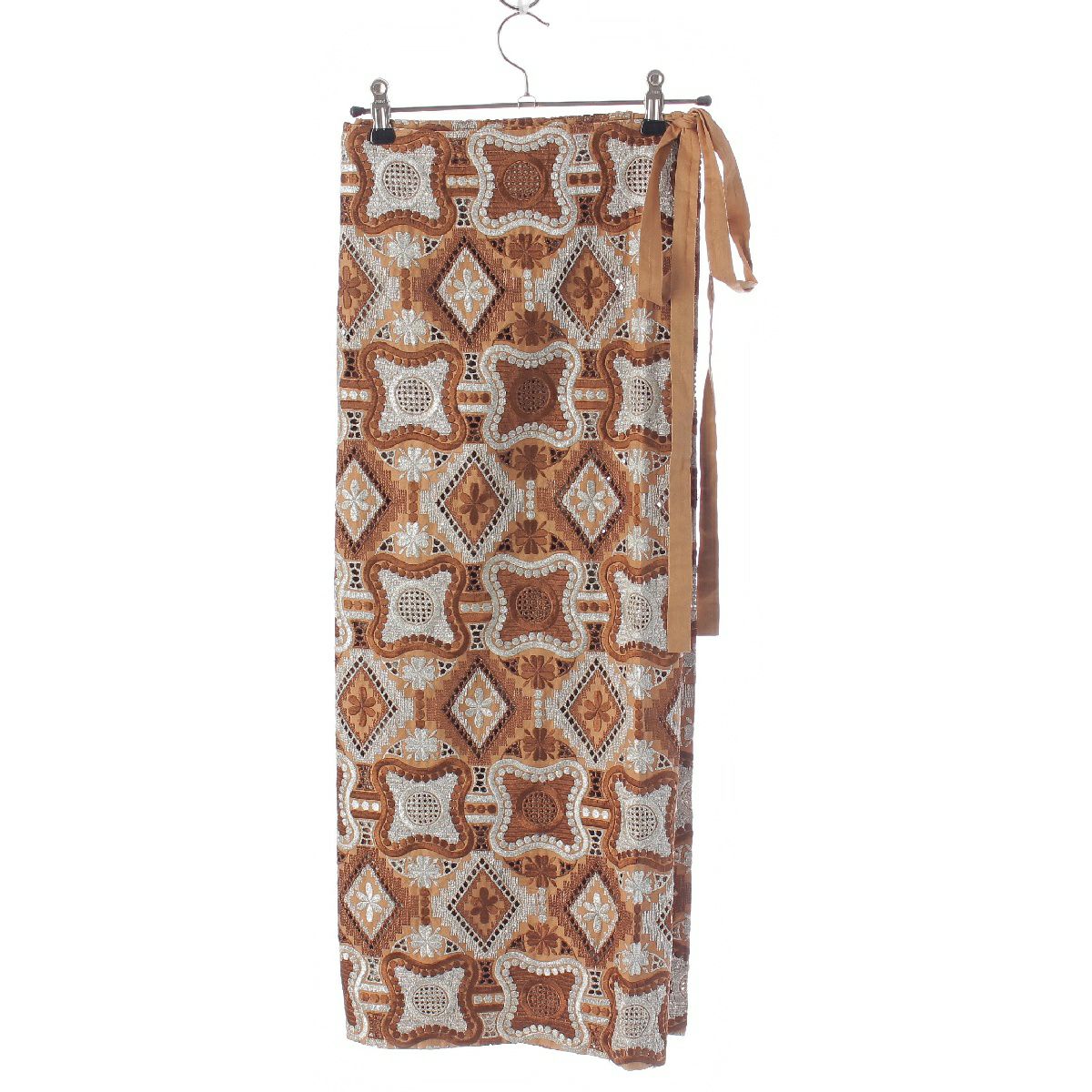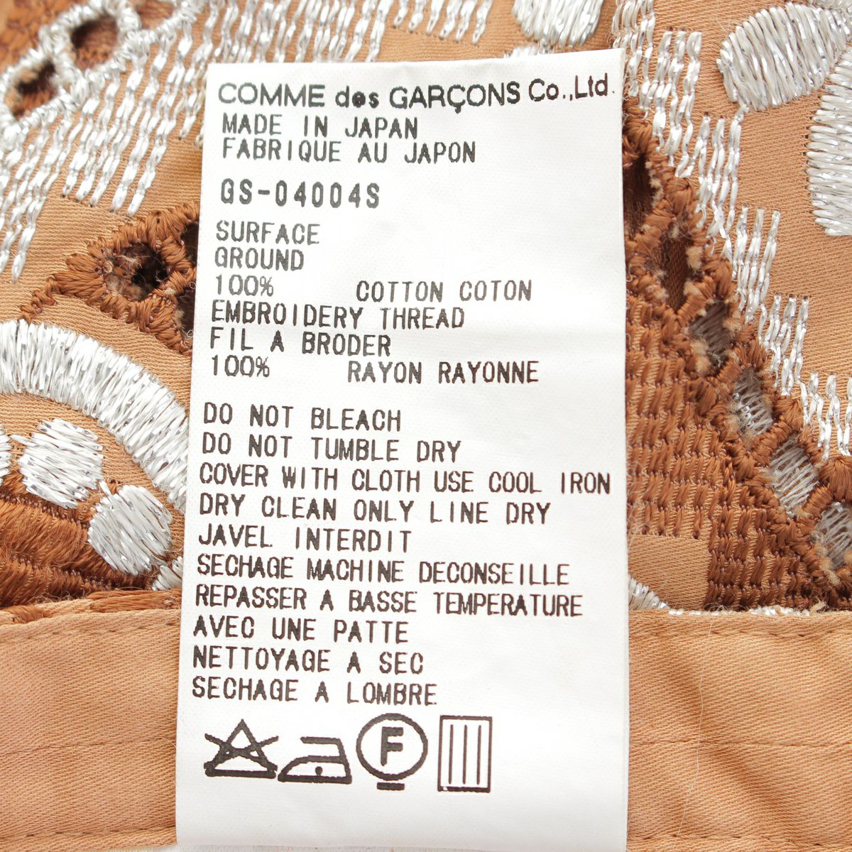 コムデギャルソン 99AW AD1999 コットン 刺繍 ロング ラップ スカート GS-04004S ブラウン S