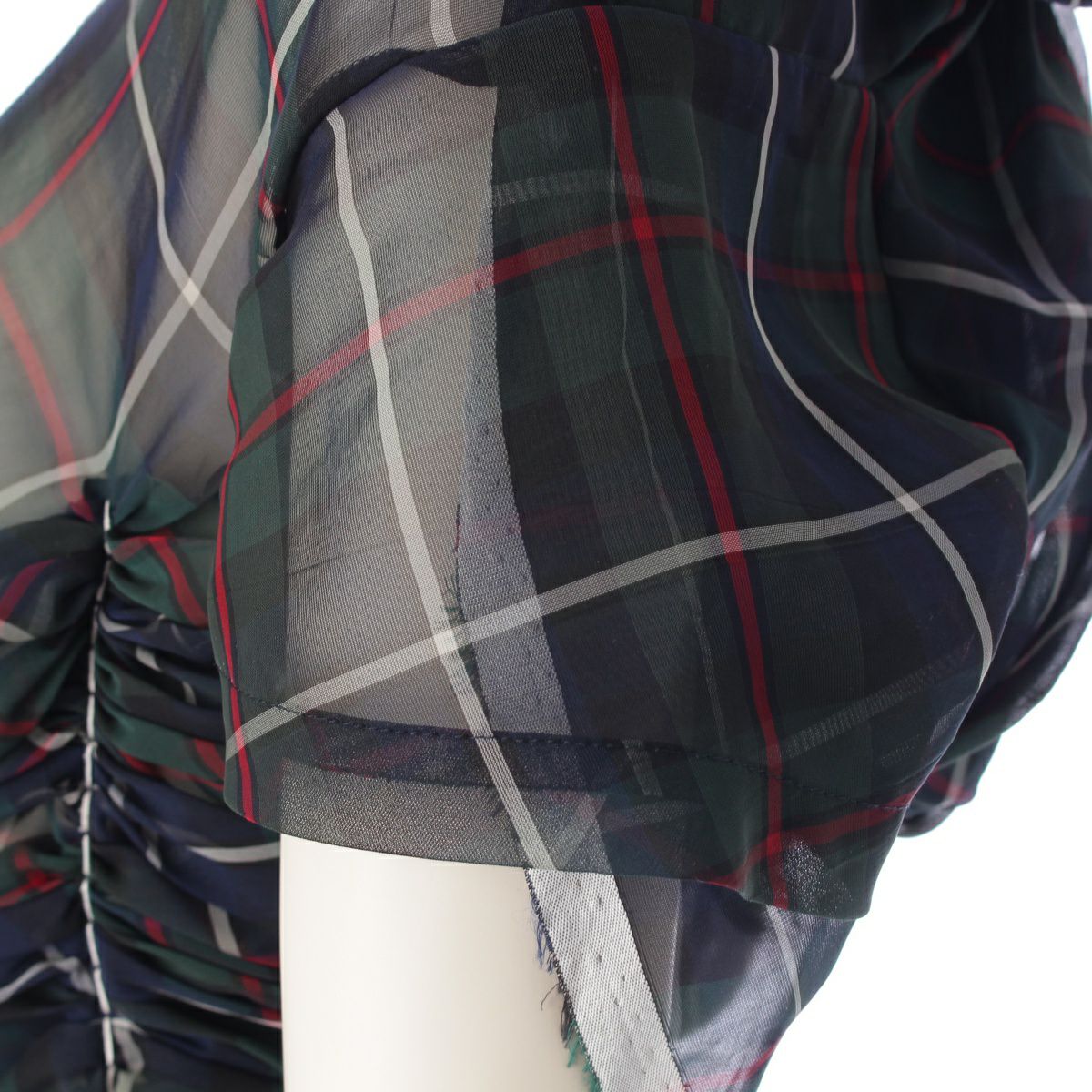 コムデギャルソン 05AW チェック柄 丸襟 シャーリングデザイン 変形 ブラウス トップス GQ-B017 グリーン S