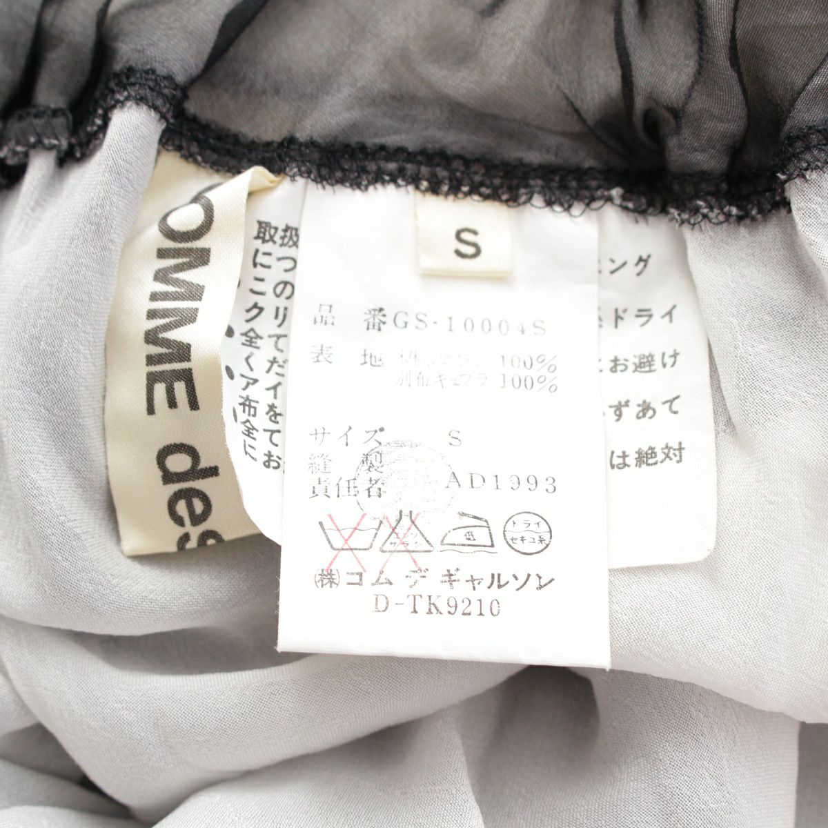 コムデギャルソン 94SS AD1993 バイアスカット レイヤー シースルー ロング スカート ボトムス ブラック ホワイト S