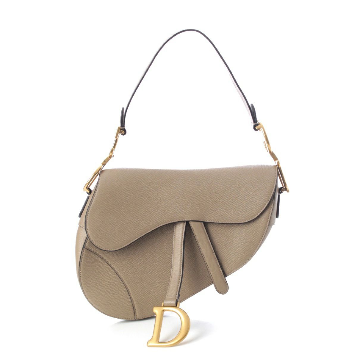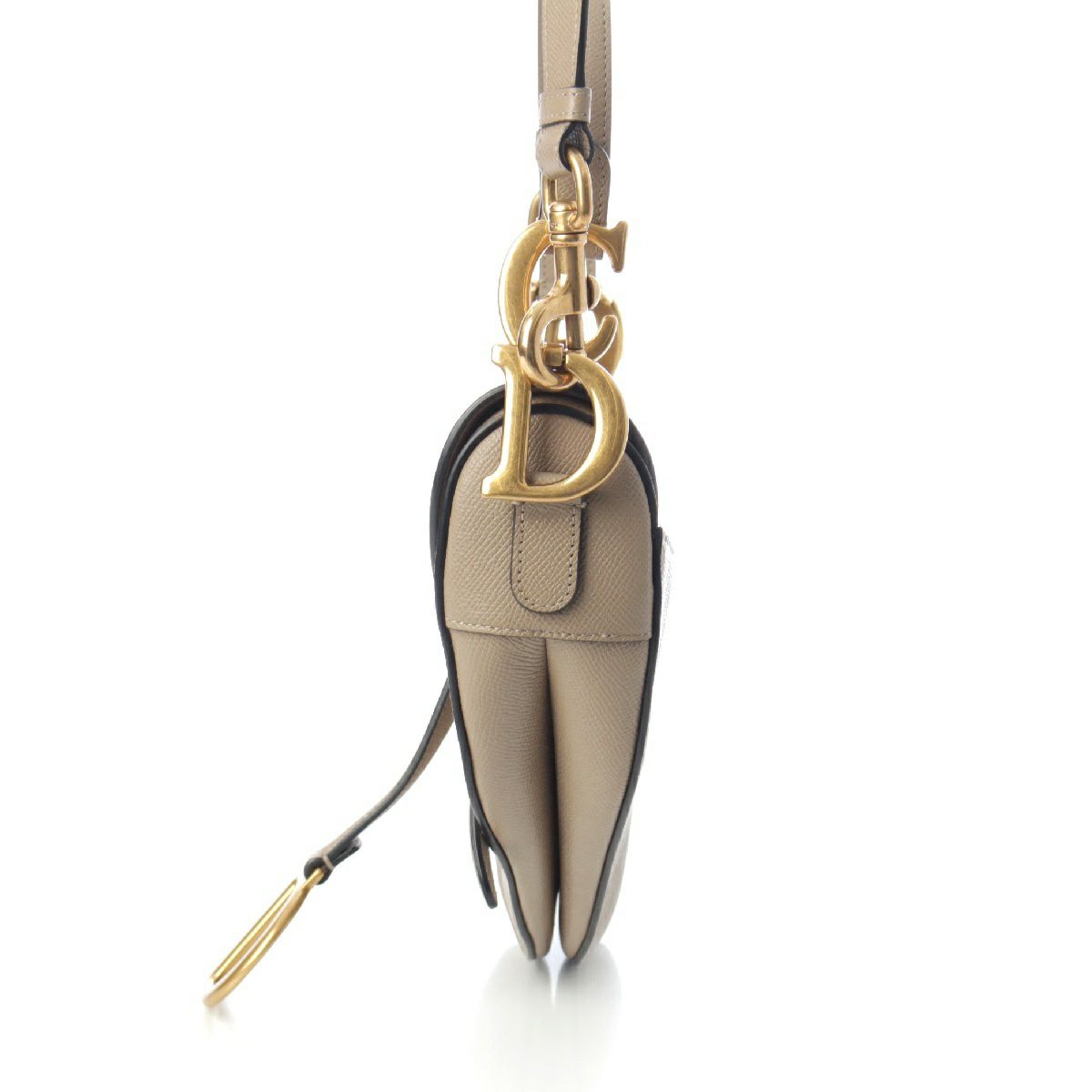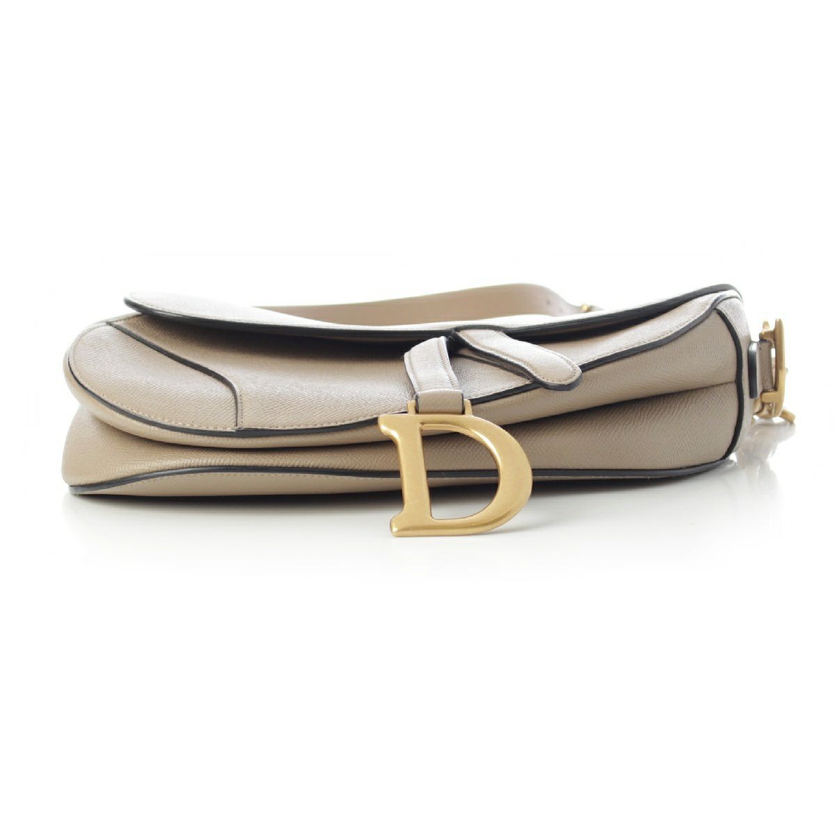 ディオール グレインドカーフスキン サドル Dチャーム ワンショルダー 2way バッグ ベージュ ゴールド金具