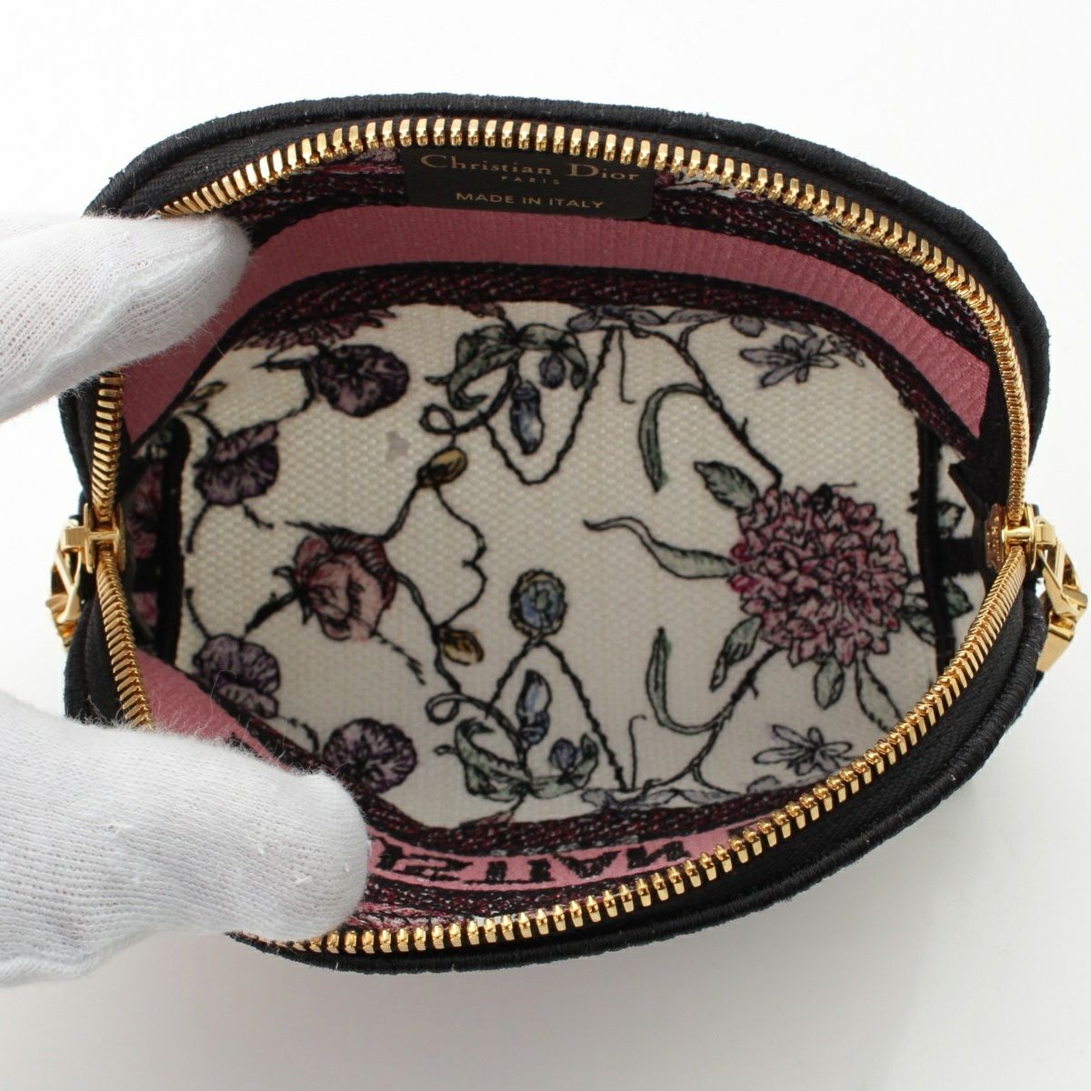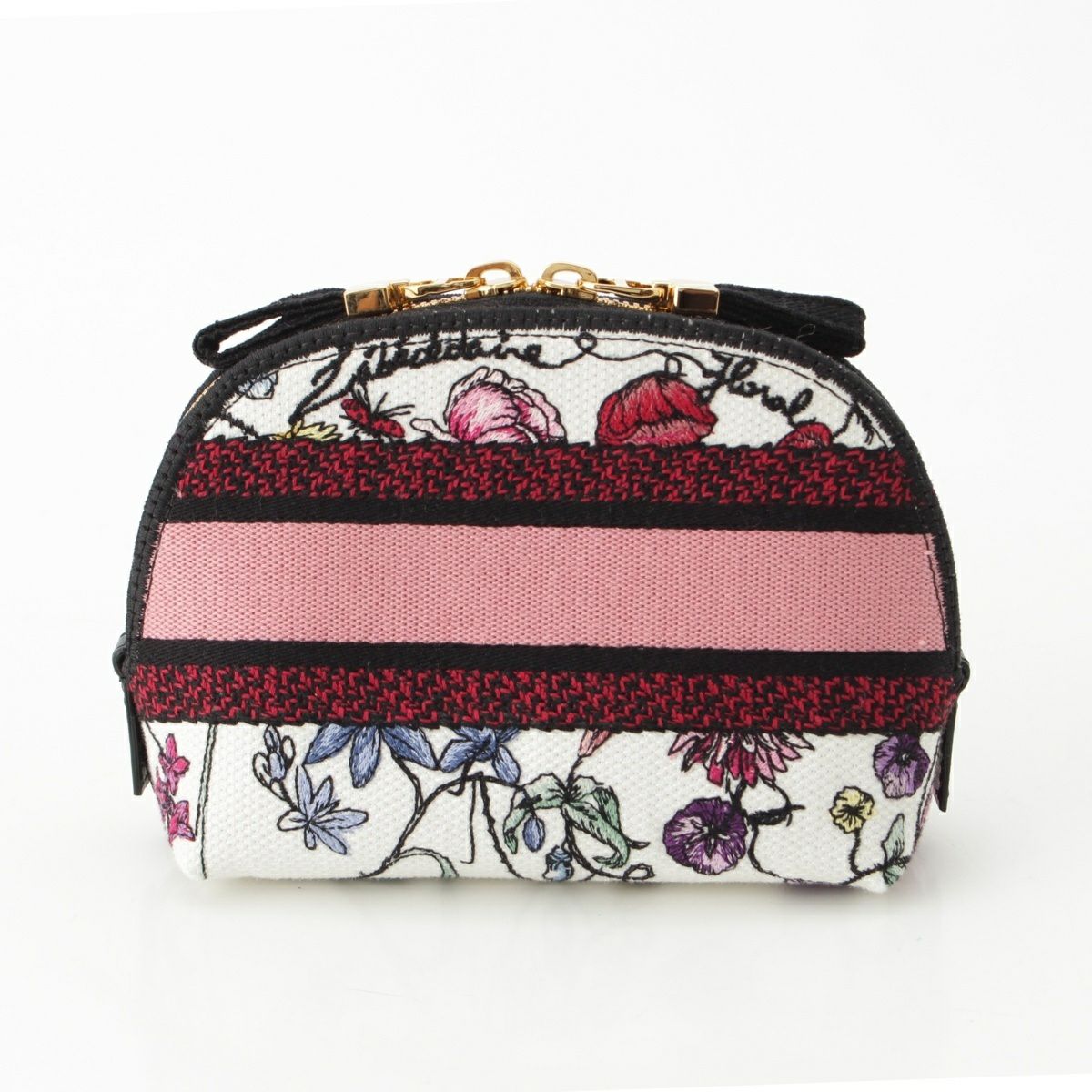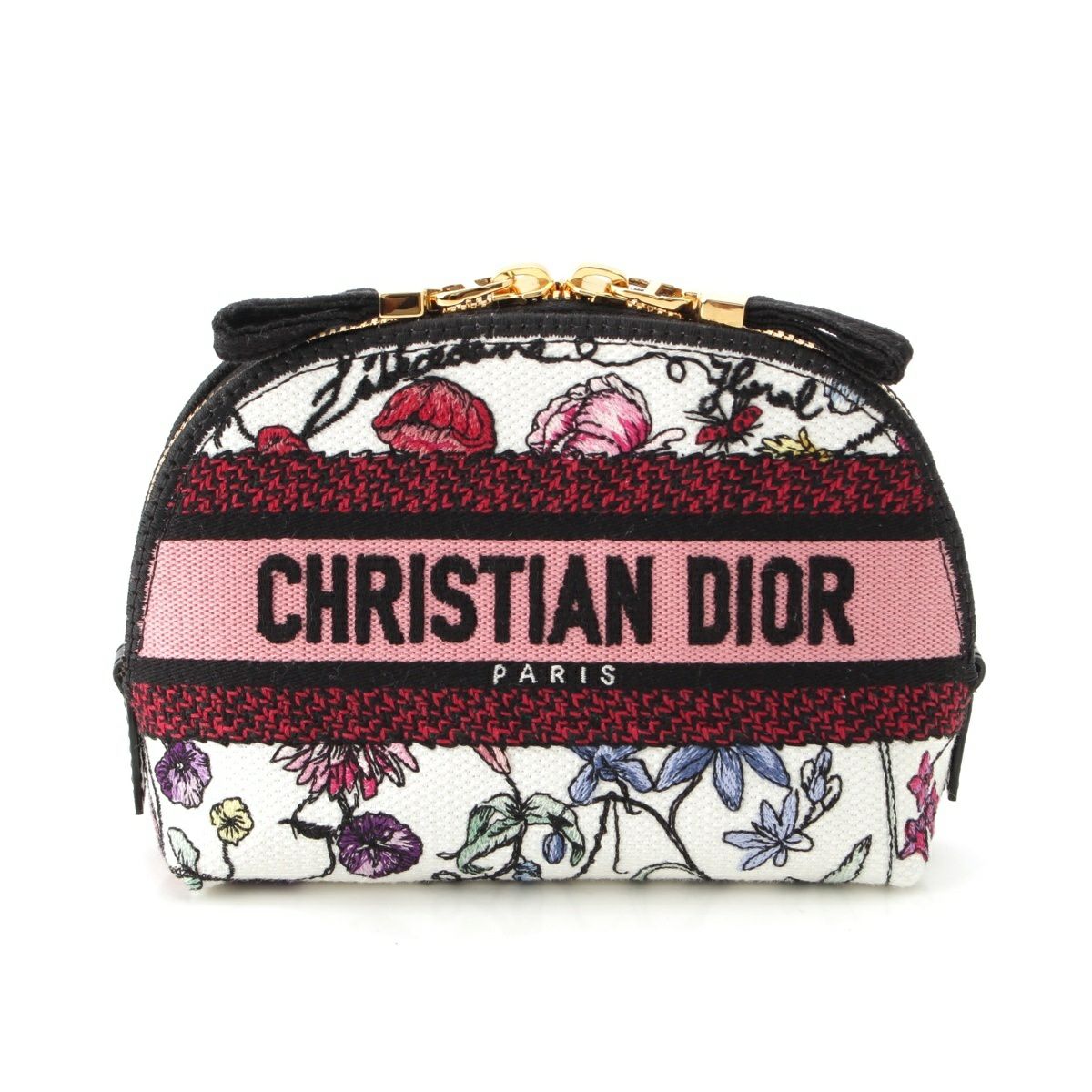 ディオール キャンバス エンブロイダリー ロゴ フラワー コスメ ミニ ポーチ ホワイト×ピンク