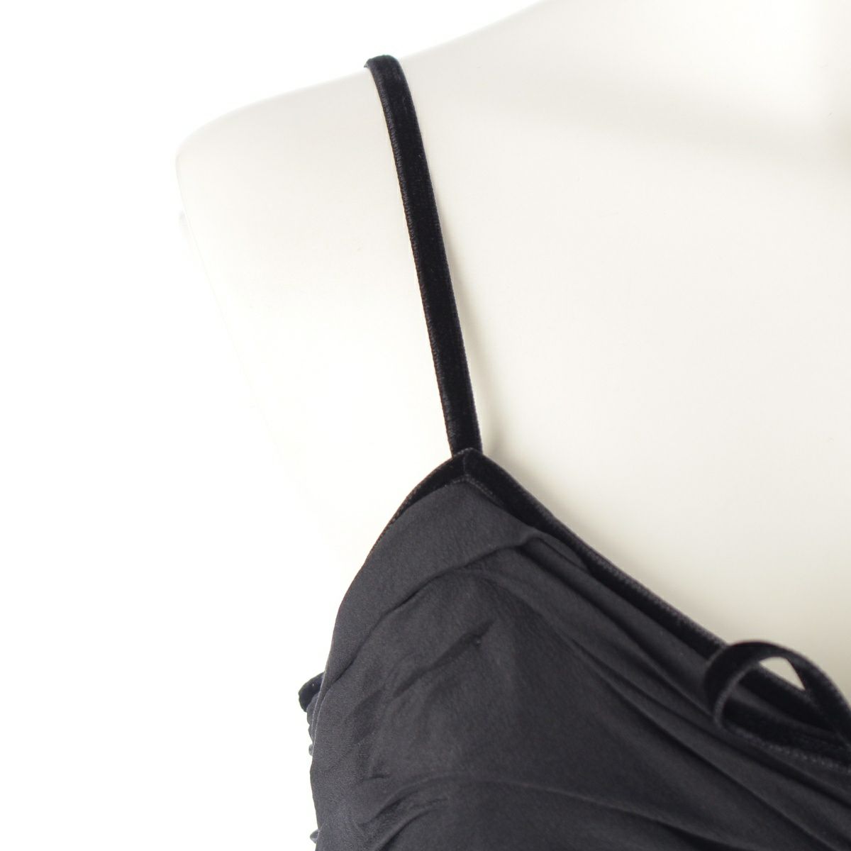 ディオール 2006 シルク ベロア ジョンガリアーノ期 ギャザー キャミソールドレス ワンピース ブラック F36