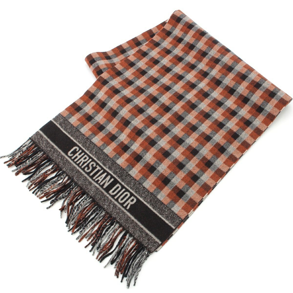 ディオール ウール チェック ロゴ マフラー 05DCH201I151 ブラウン系