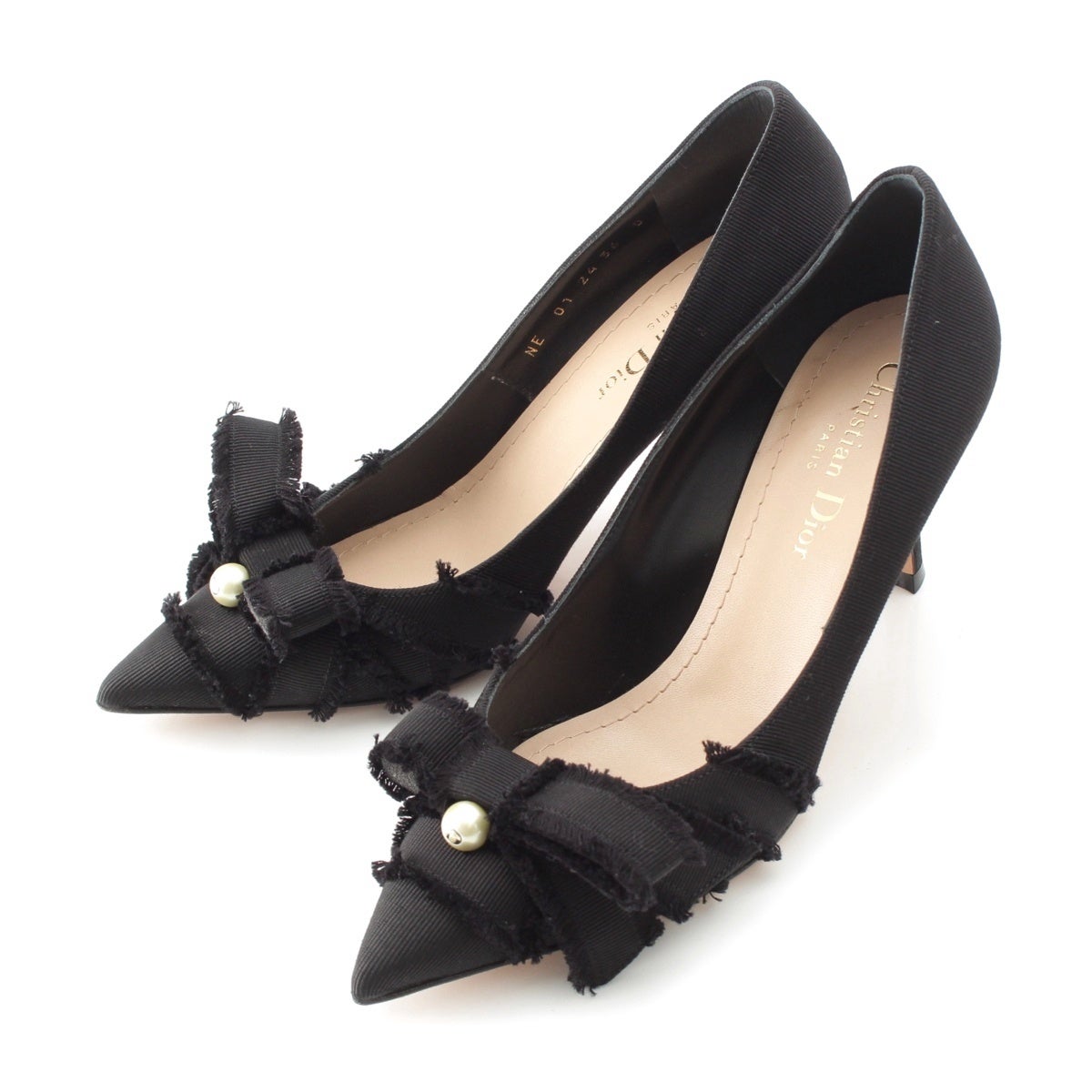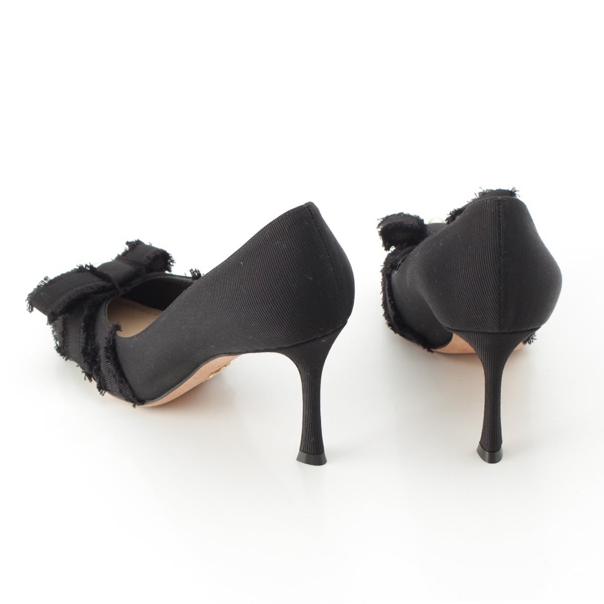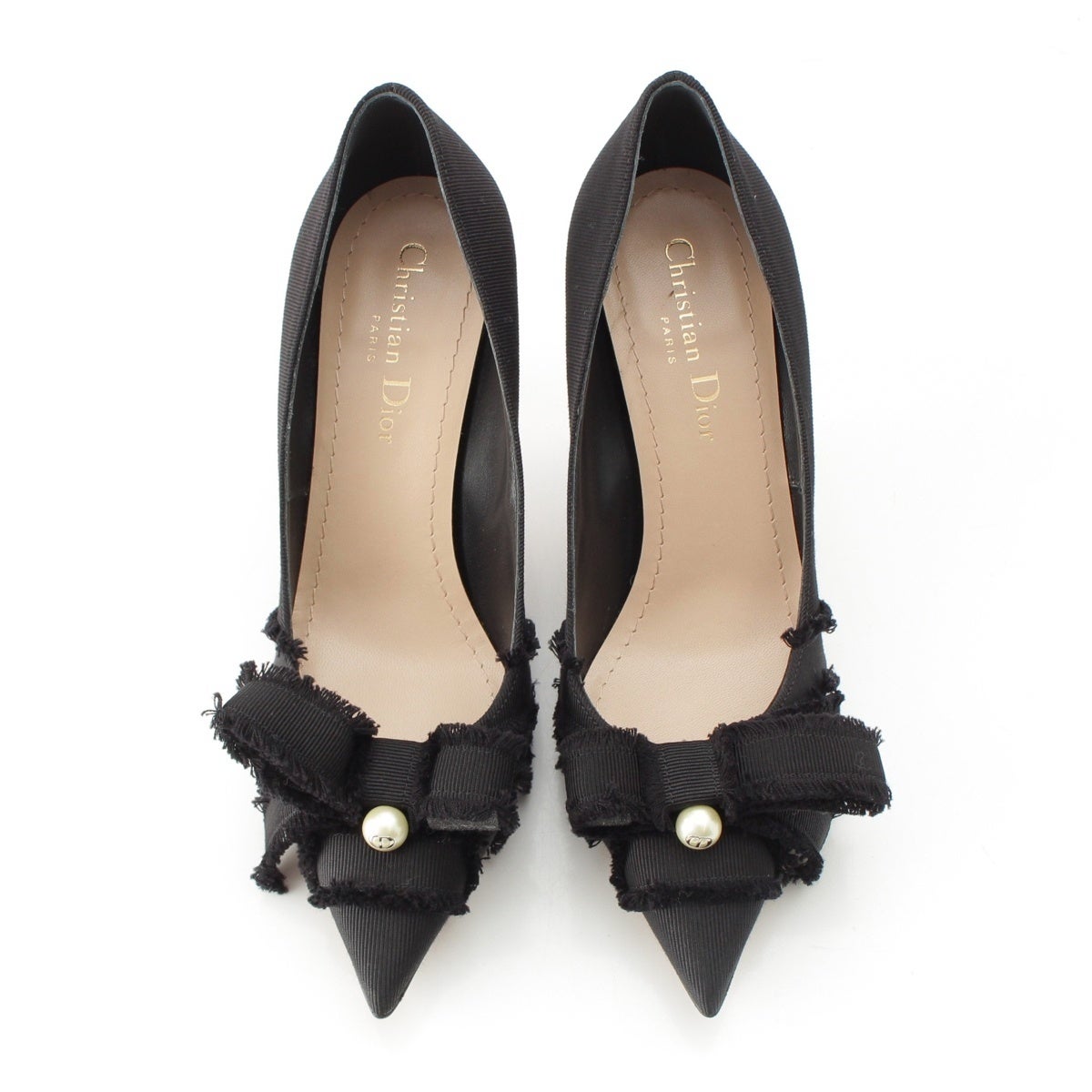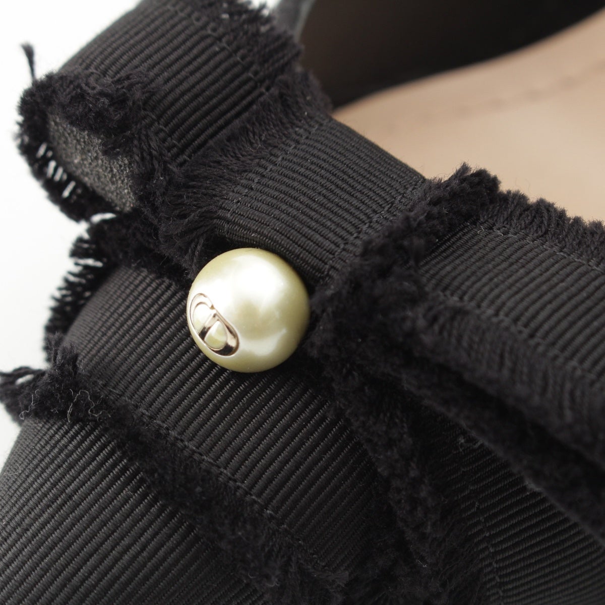 ディオール 24SS ADIORABLE フリンジ グログラン ロゴパール リボン ヒール パンプス シューズ ブラック 36