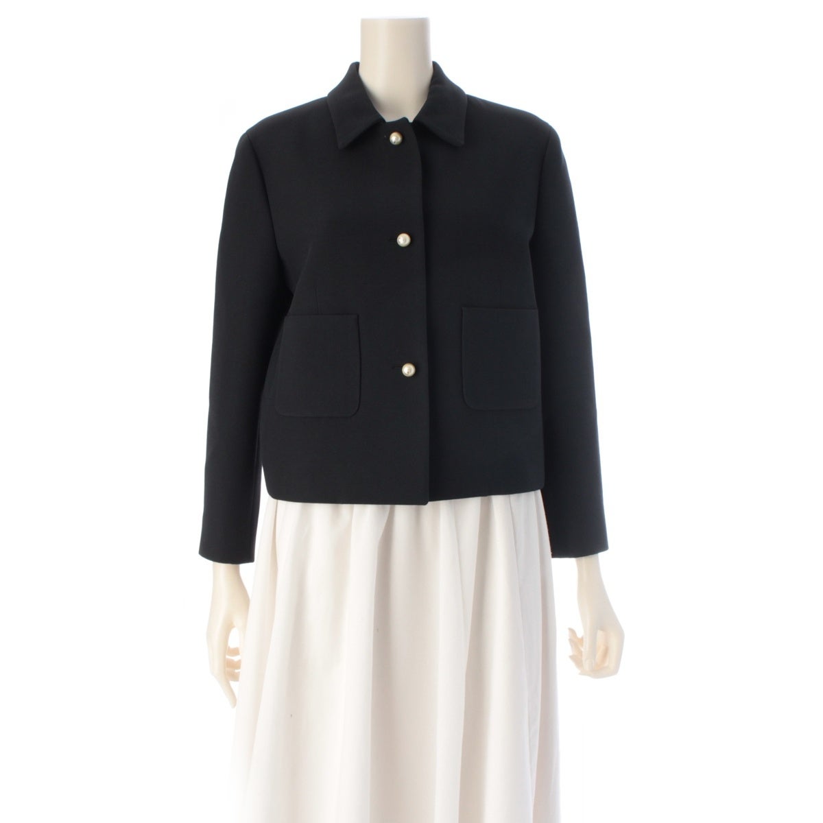 ディオール ウール シルク CDロゴ パールボタン クロップド テーラードジャケット 351V34A1166 ブラック 38