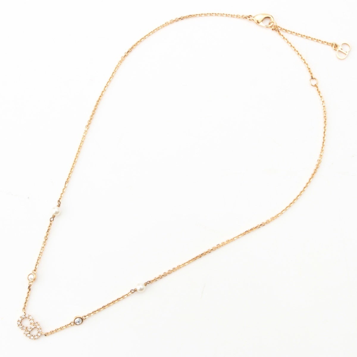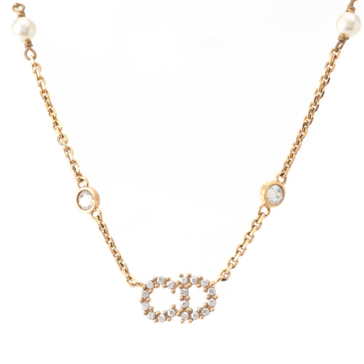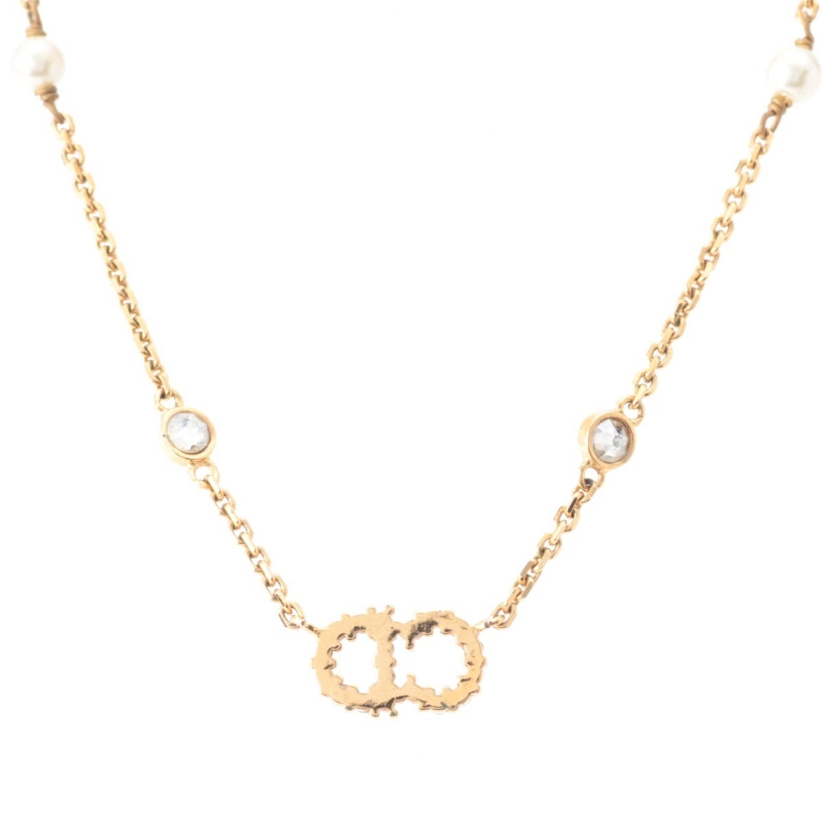 ディオール Clair D Lune クレール ディー リュヌ CDロゴ ラインストーン パール ネックレス アクセサリー ゴールド