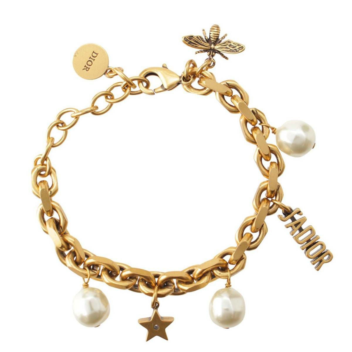 ディオール DIOR J'ADIOR ロゴ パール Bee ビー スター チェーンブレスレット アクセサリー ゴールド