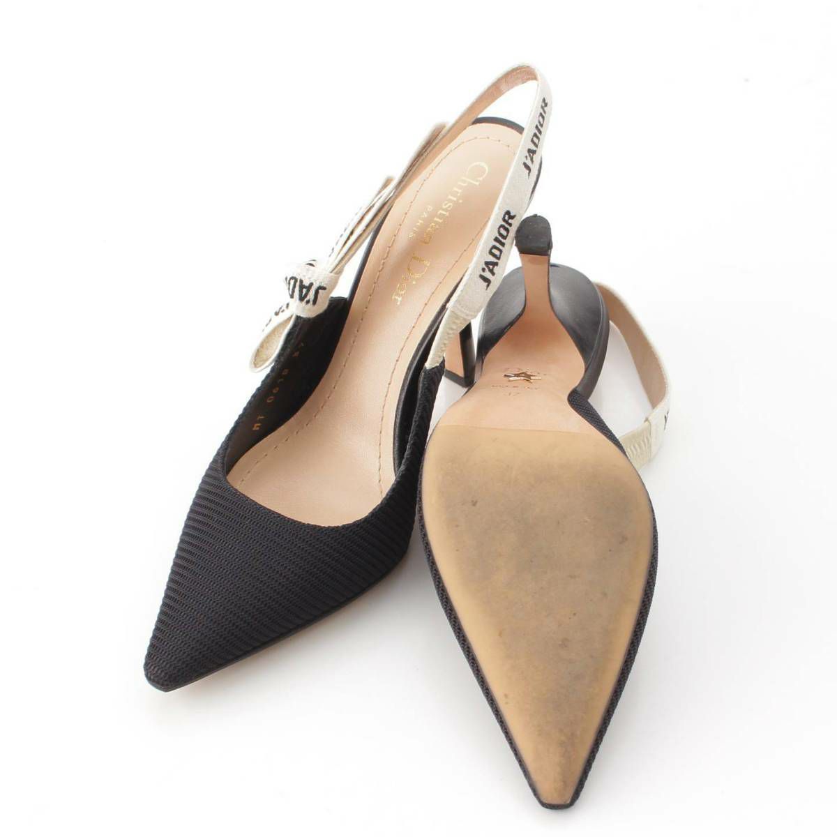 ディオール DIOR J'ADIOR メッシュ スリングバック ヒール パンプス ミュール ブラック 37