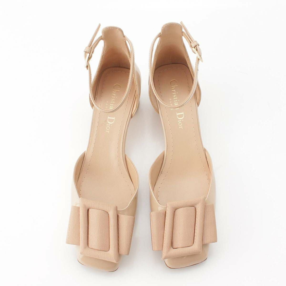 ディオール DIOR スリングバック バックル パテントレザー スクエアトゥ ヒールパンプス ベージュ 36