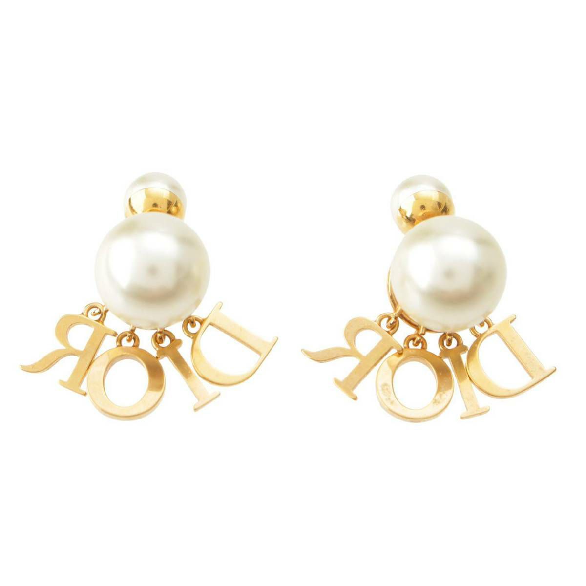 ディオール DIOR Tribales トライバル パール ロゴ ラインストーン ピアス E1411TRICY ホワイト