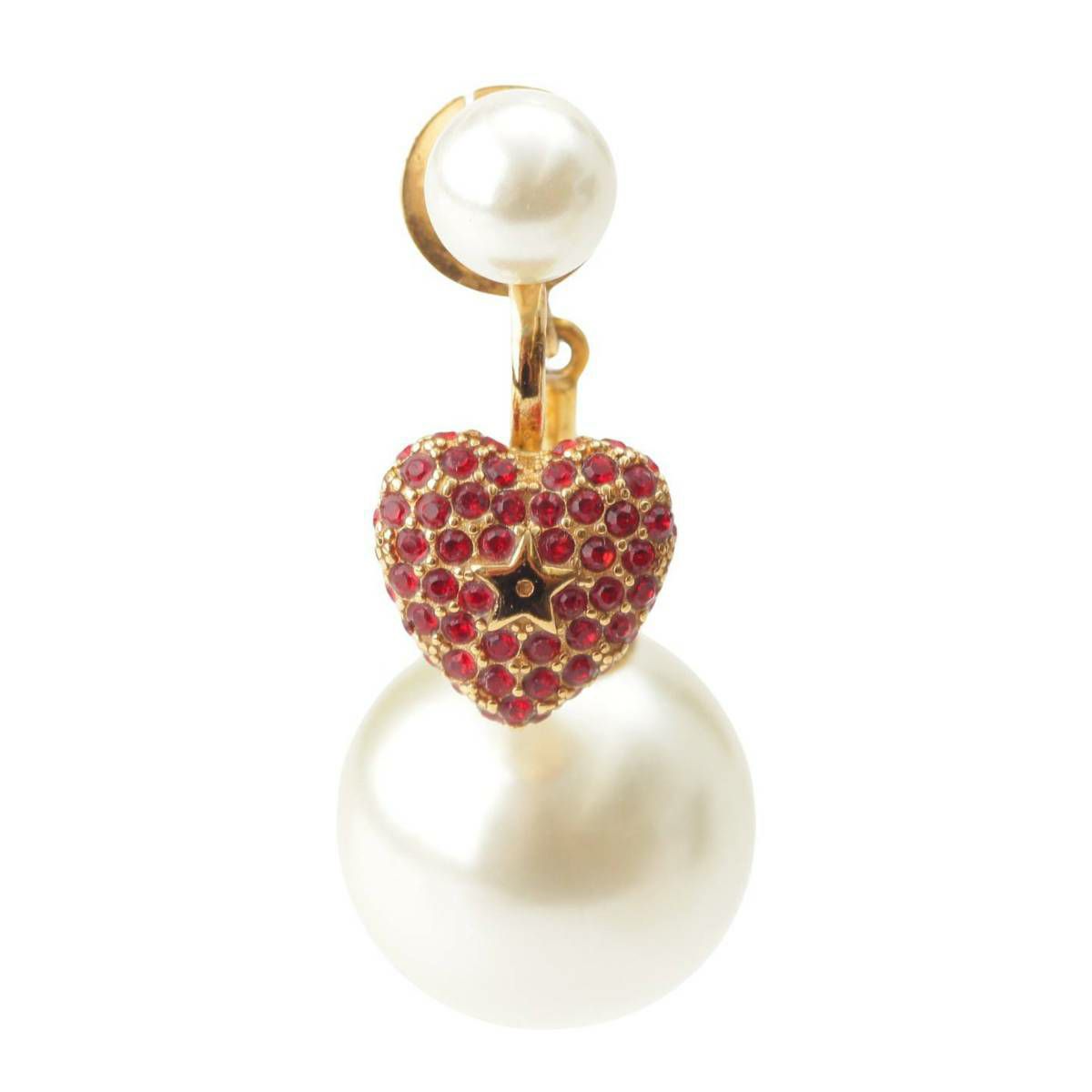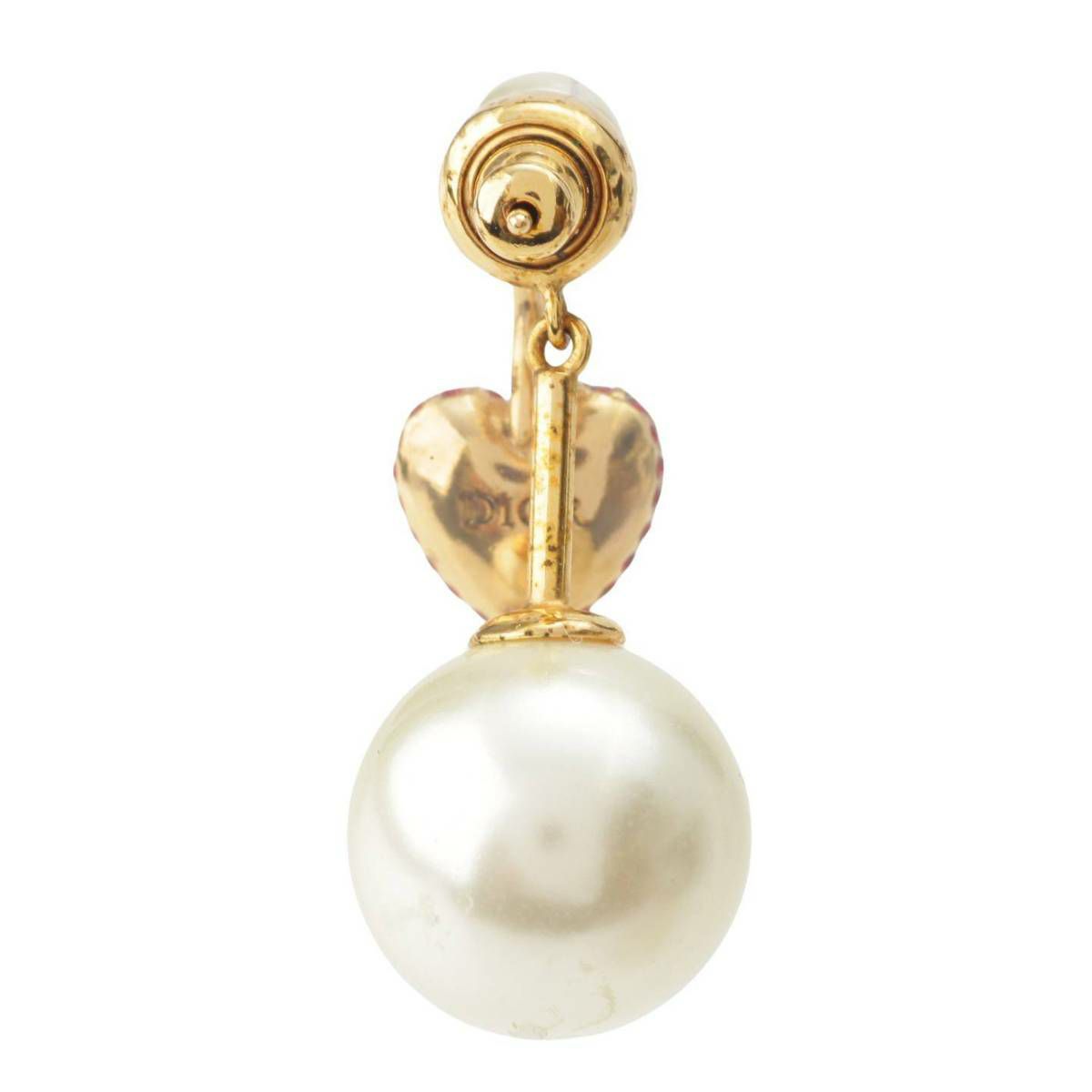 ディオール DIOR Tribales パール ラインストーン ハート スイング ピアス 片側のみ ゴールド