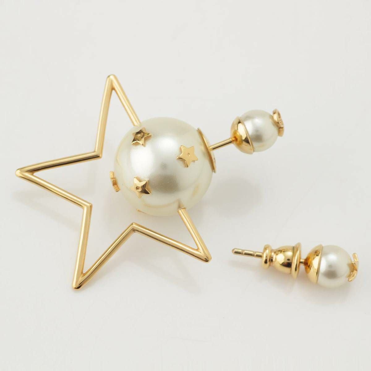 ディオール DIOR トライバル パール スター 星 CDロゴ ピアス アシンメトリー ゴールド