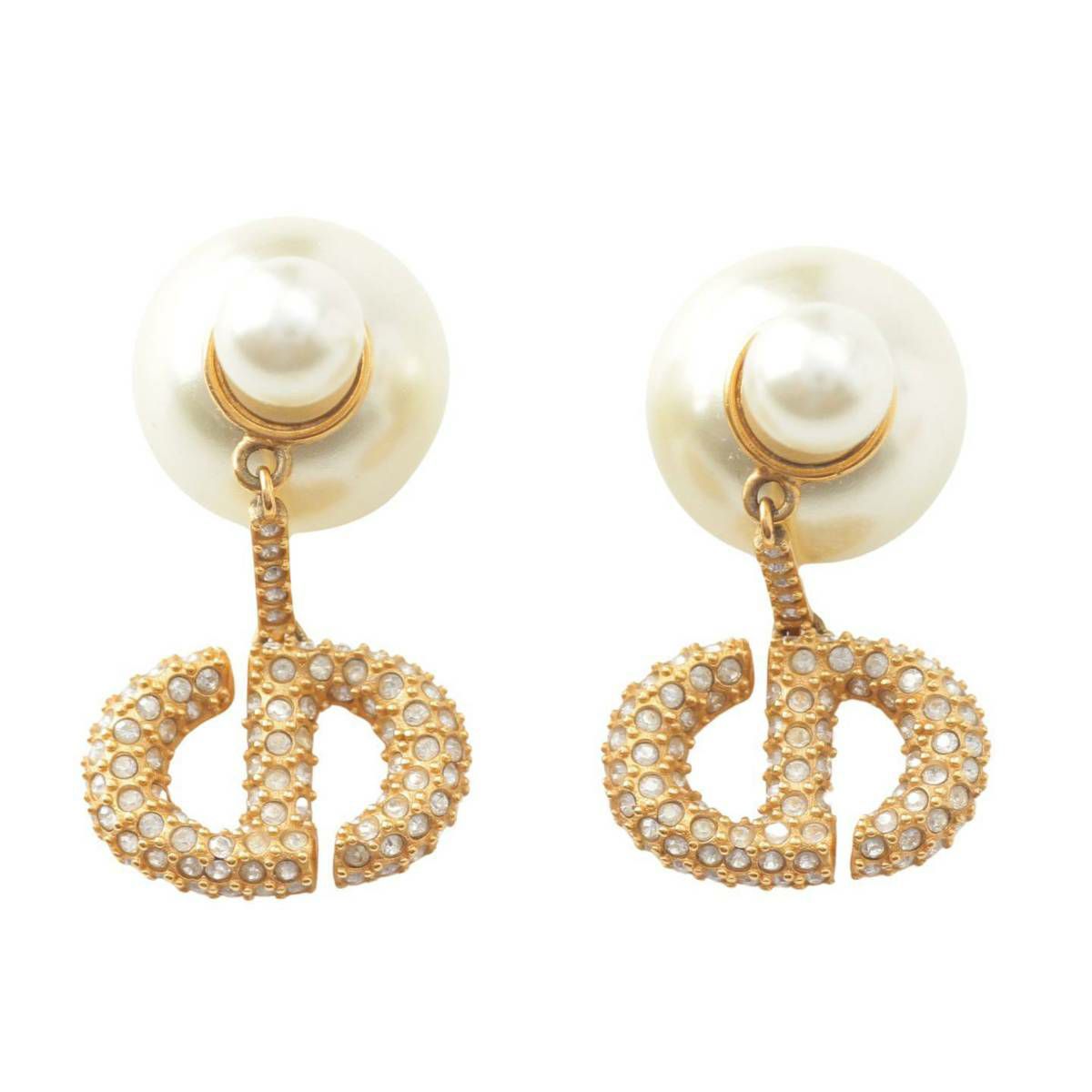 ディオール DIOR トライバル CDロゴ パール ピアス 両耳 アクセサリー ゴールド