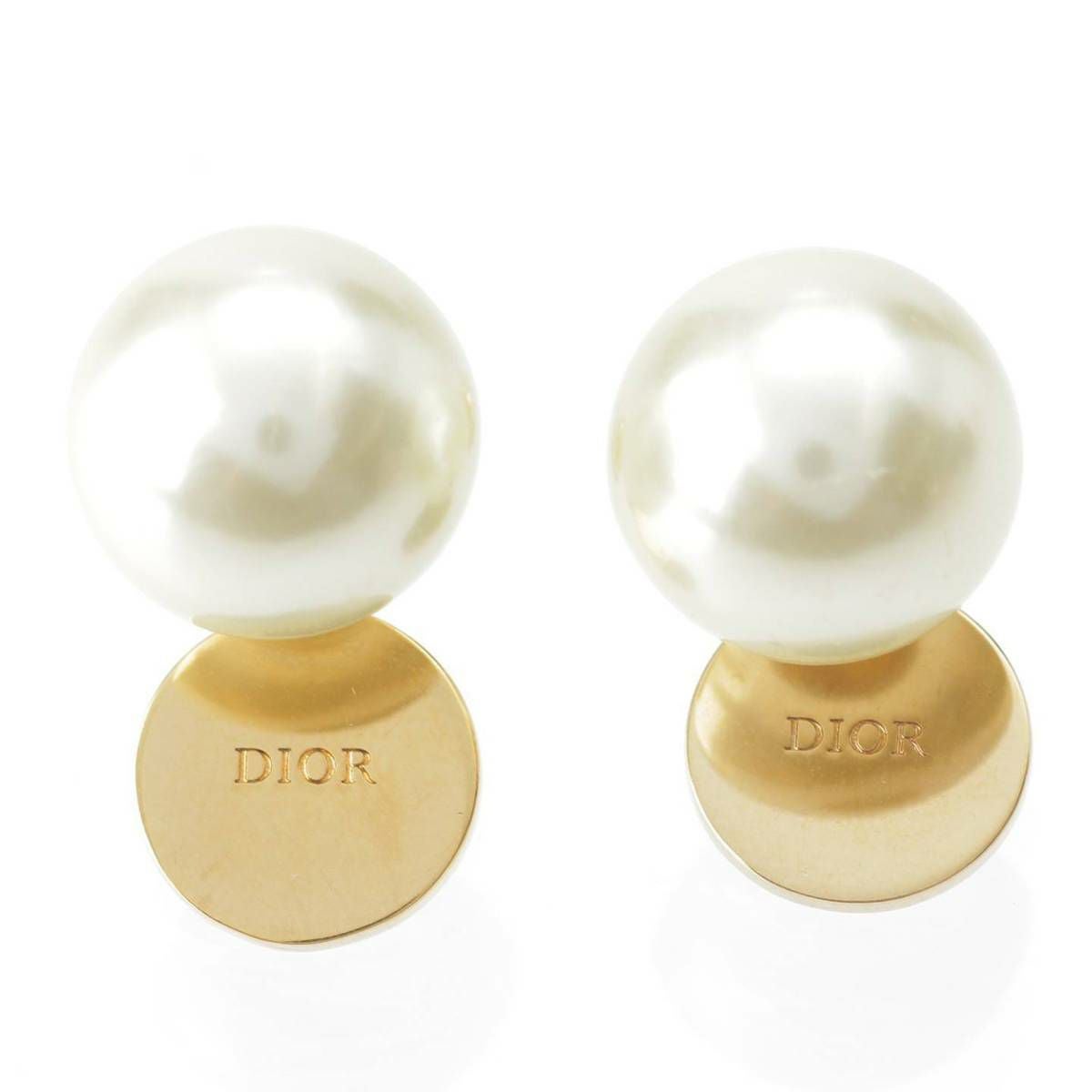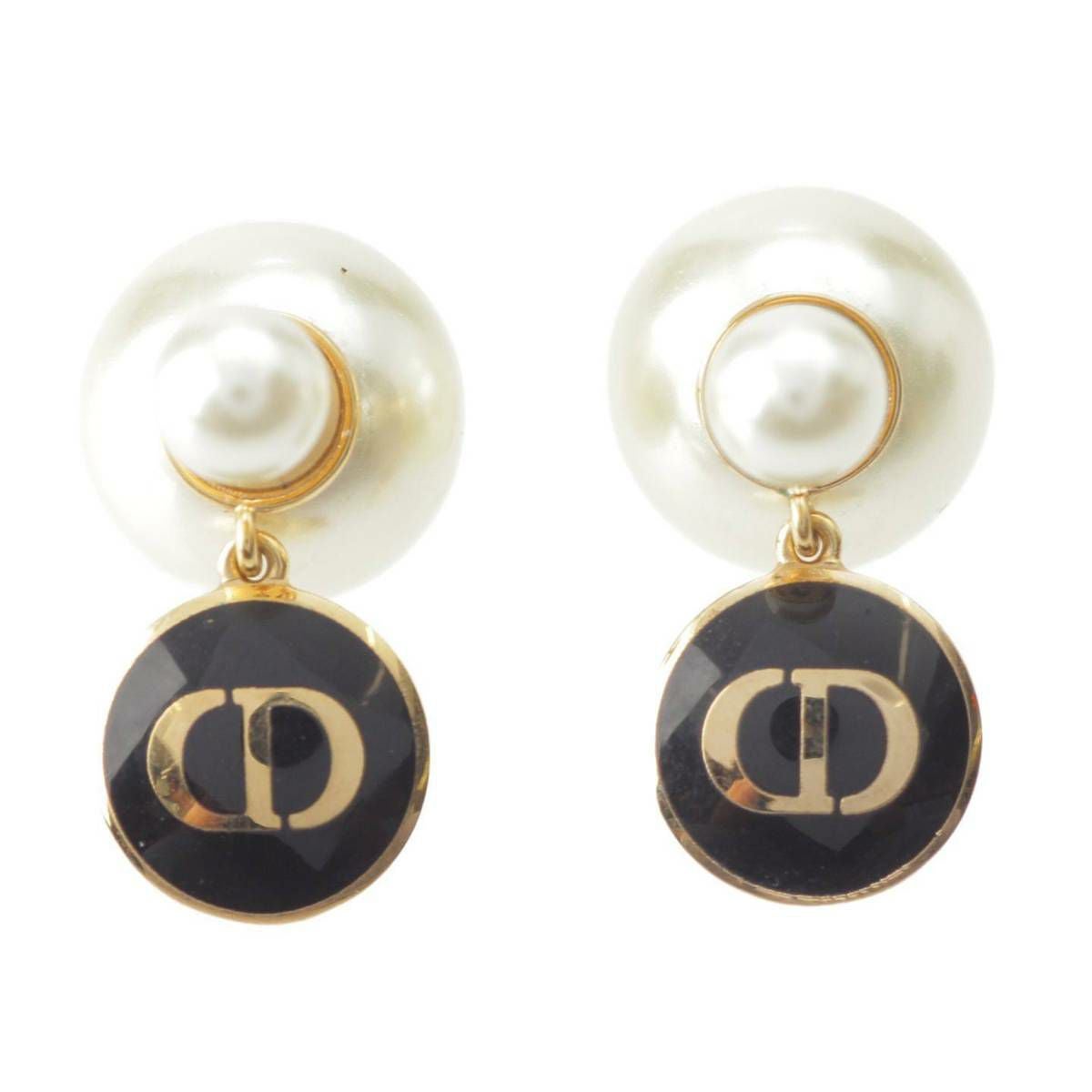 ディオール DIOR トライバル CD ロゴ パール ダブルキャッチ ピアス ブラック