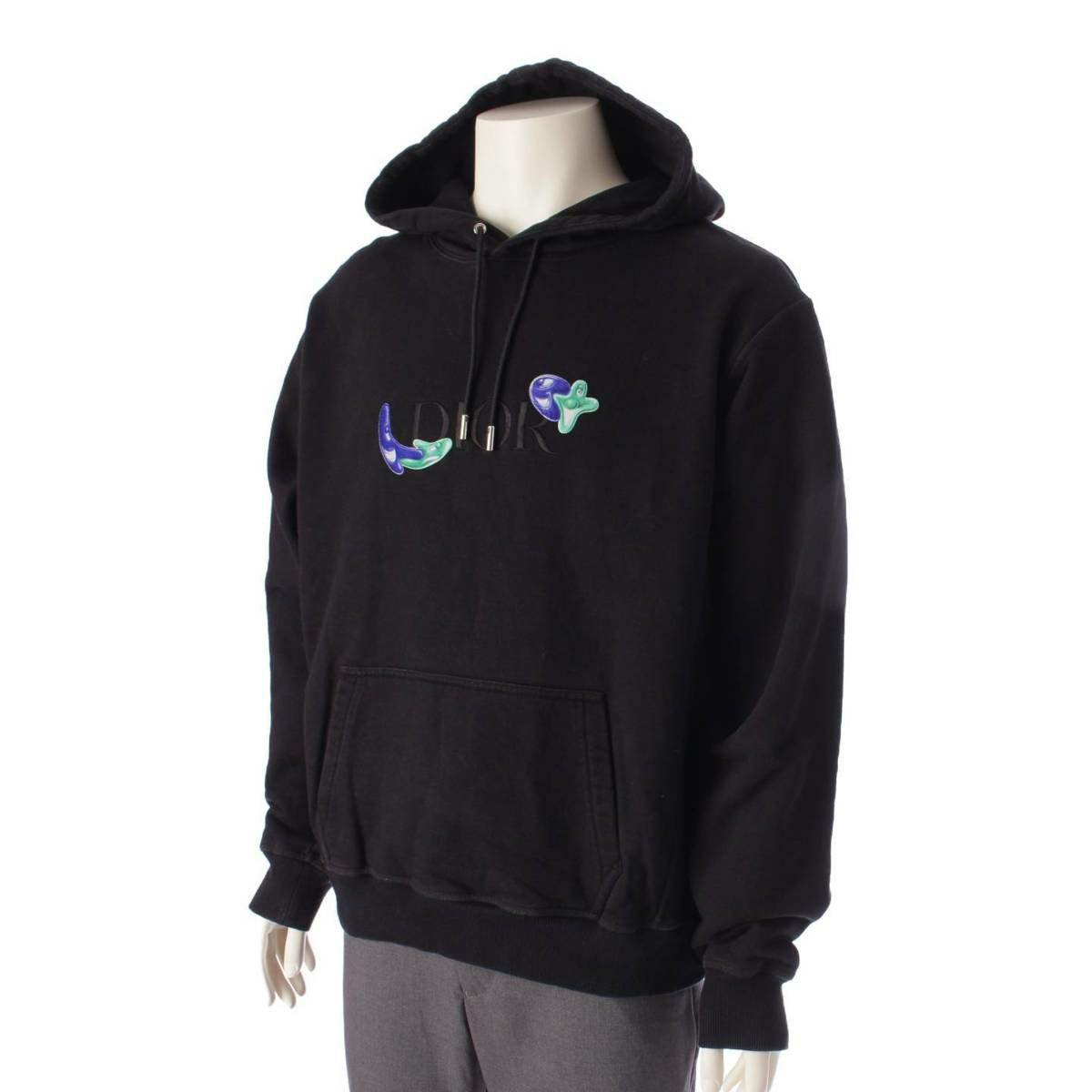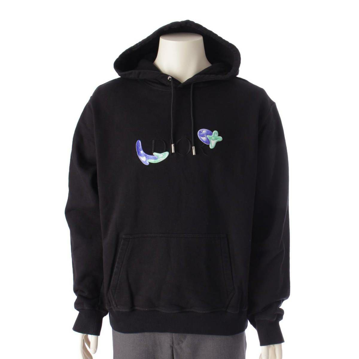 ディオール DIOR ×ケニーシャーフ 21AW ロゴ刺? プルオーバー パーカー ブラック XXL