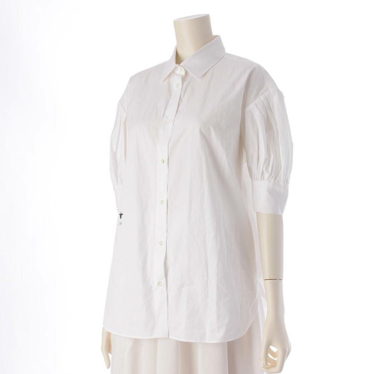 ディオール DIOR 22年 Bee ビー刺繍 パフスリーブ 半袖 コットン ブラウス シャツ ホワイト 34