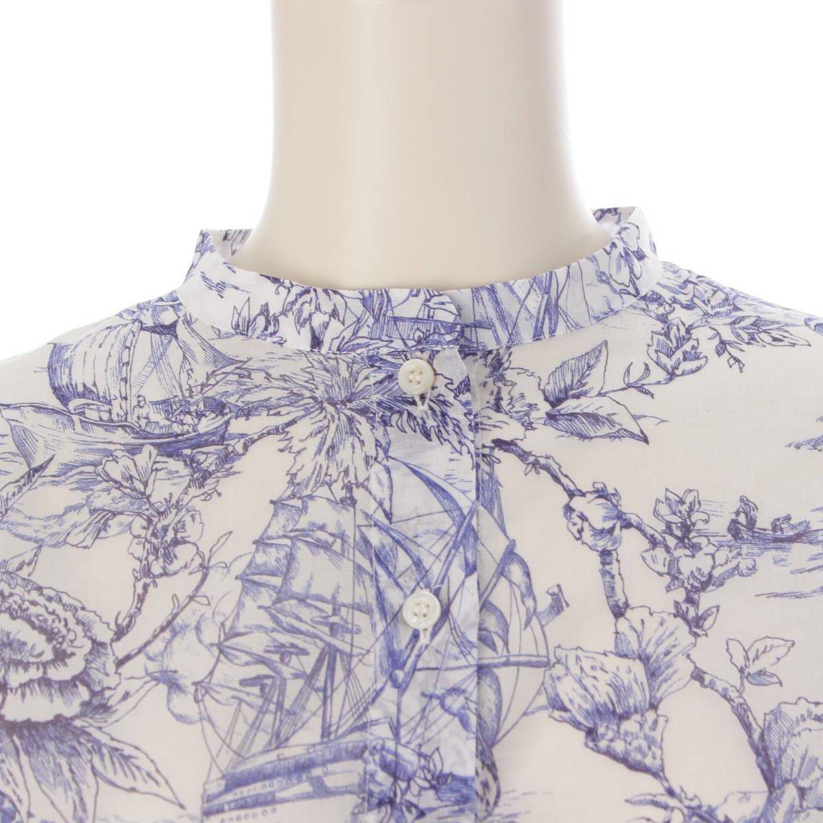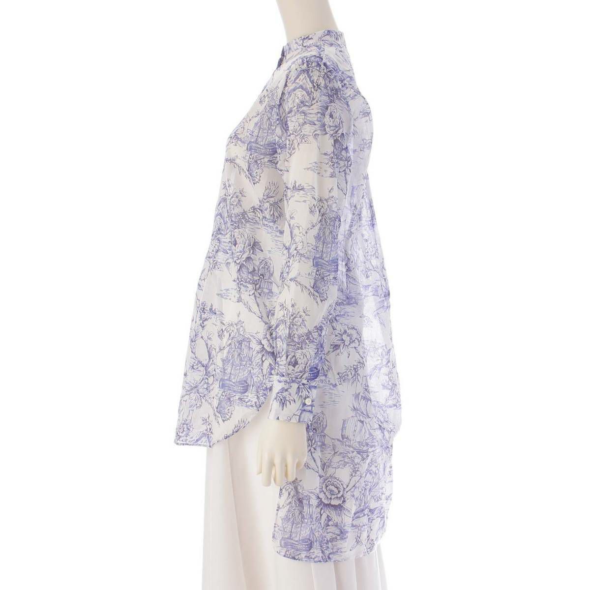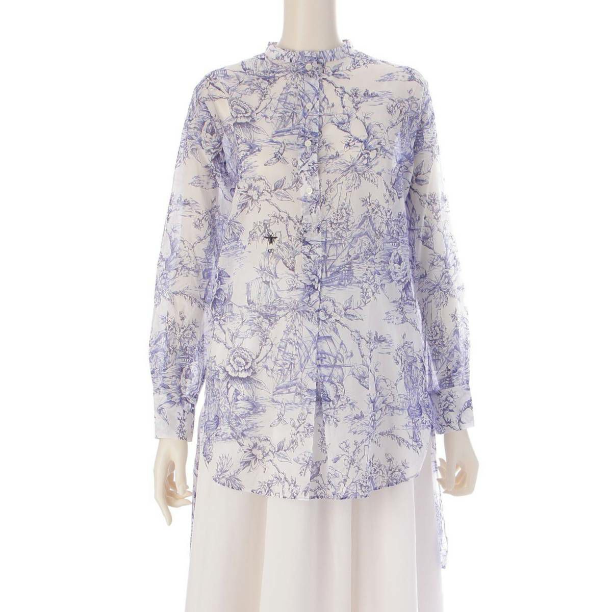 ディオール DIOR 23SS 総柄 コットン ビー刺繍 バンドカラー ロングシャツ 311B54A3845 ブルー 36
