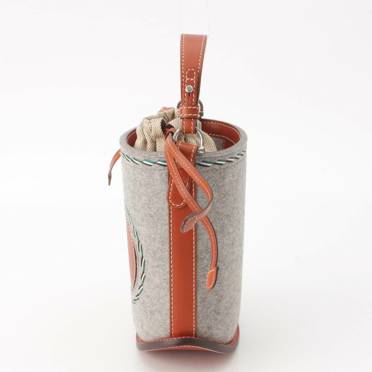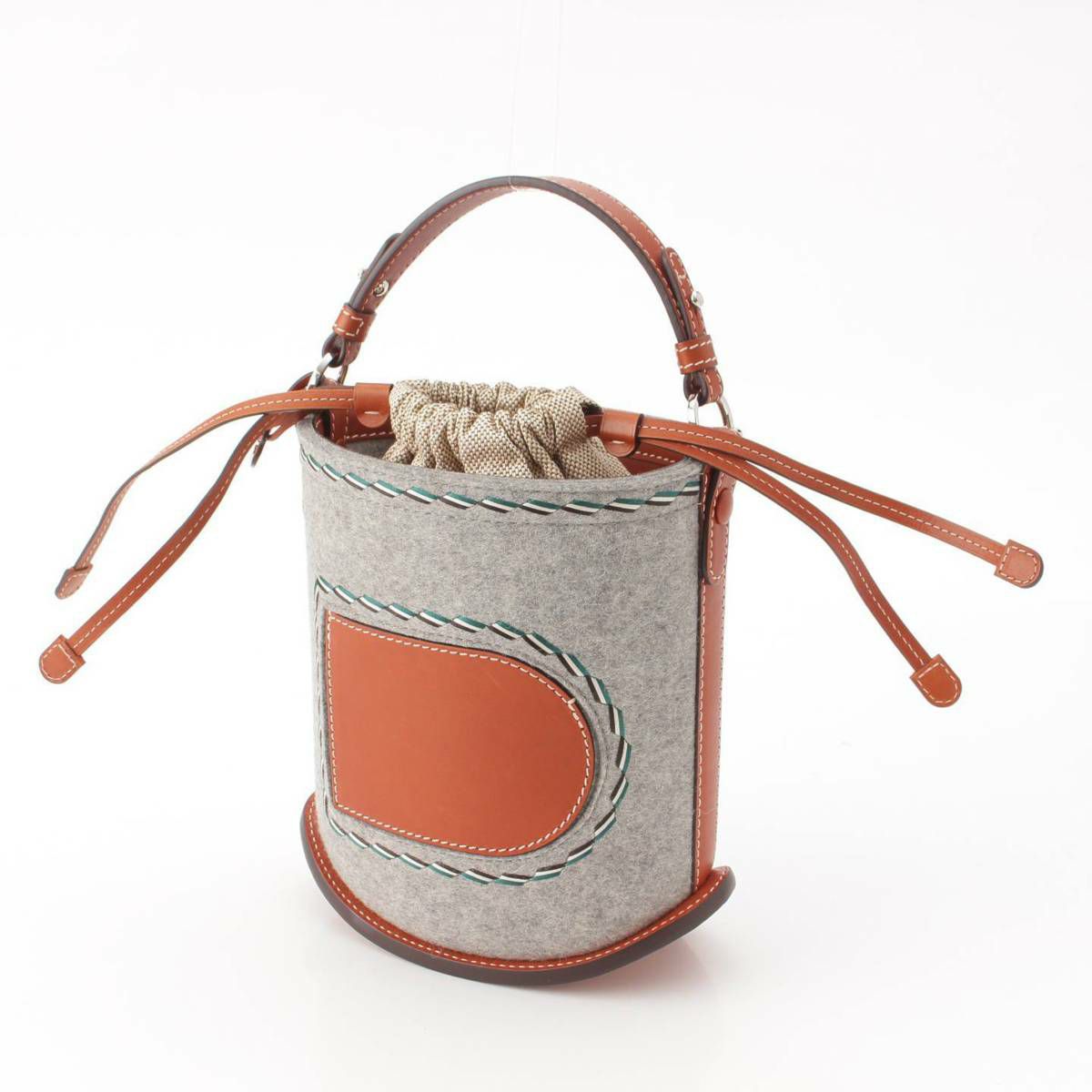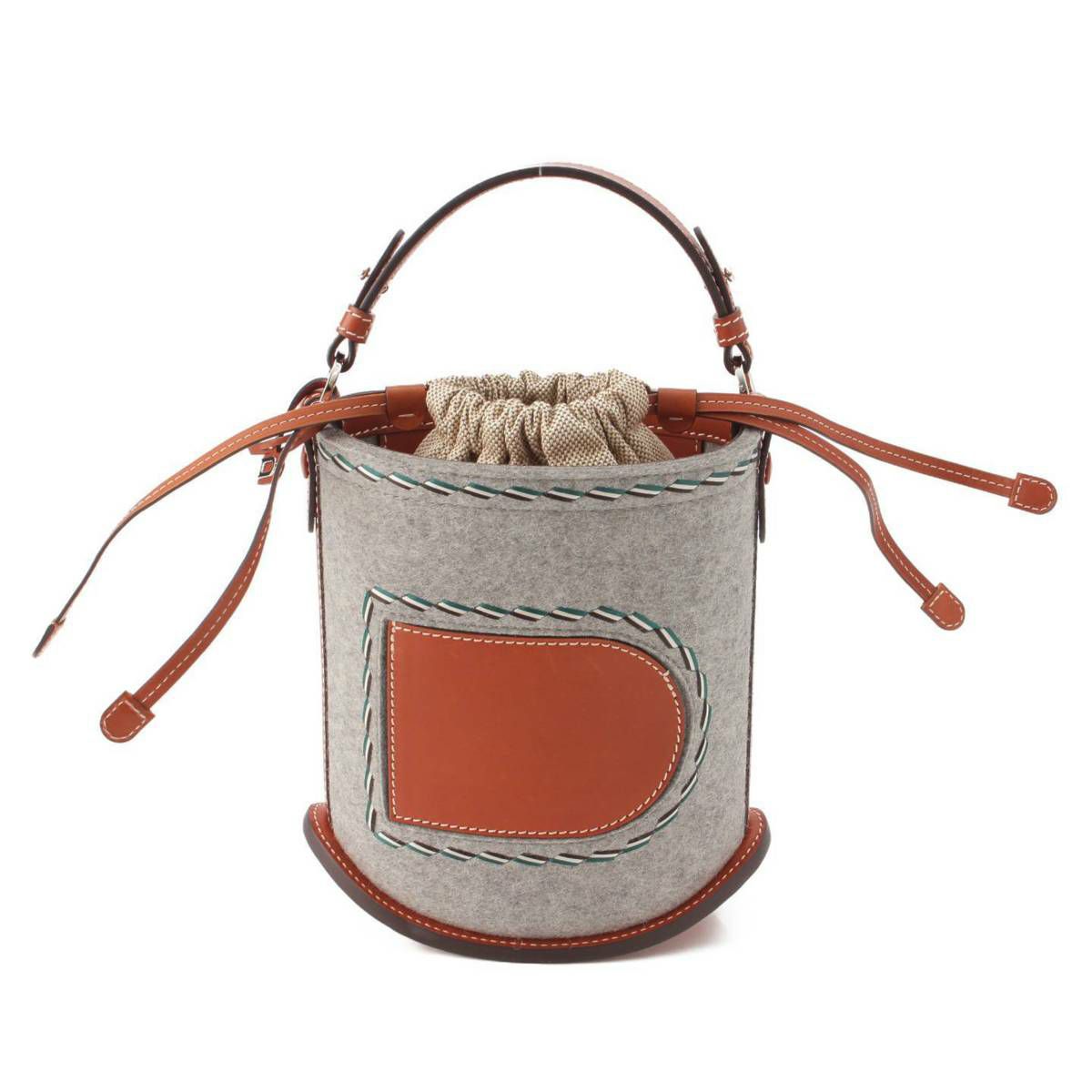 デルヴォー Delvaux パン ミニ バケット フェルト×シエラカーフ ハンドバッグ ブラウン×グレー