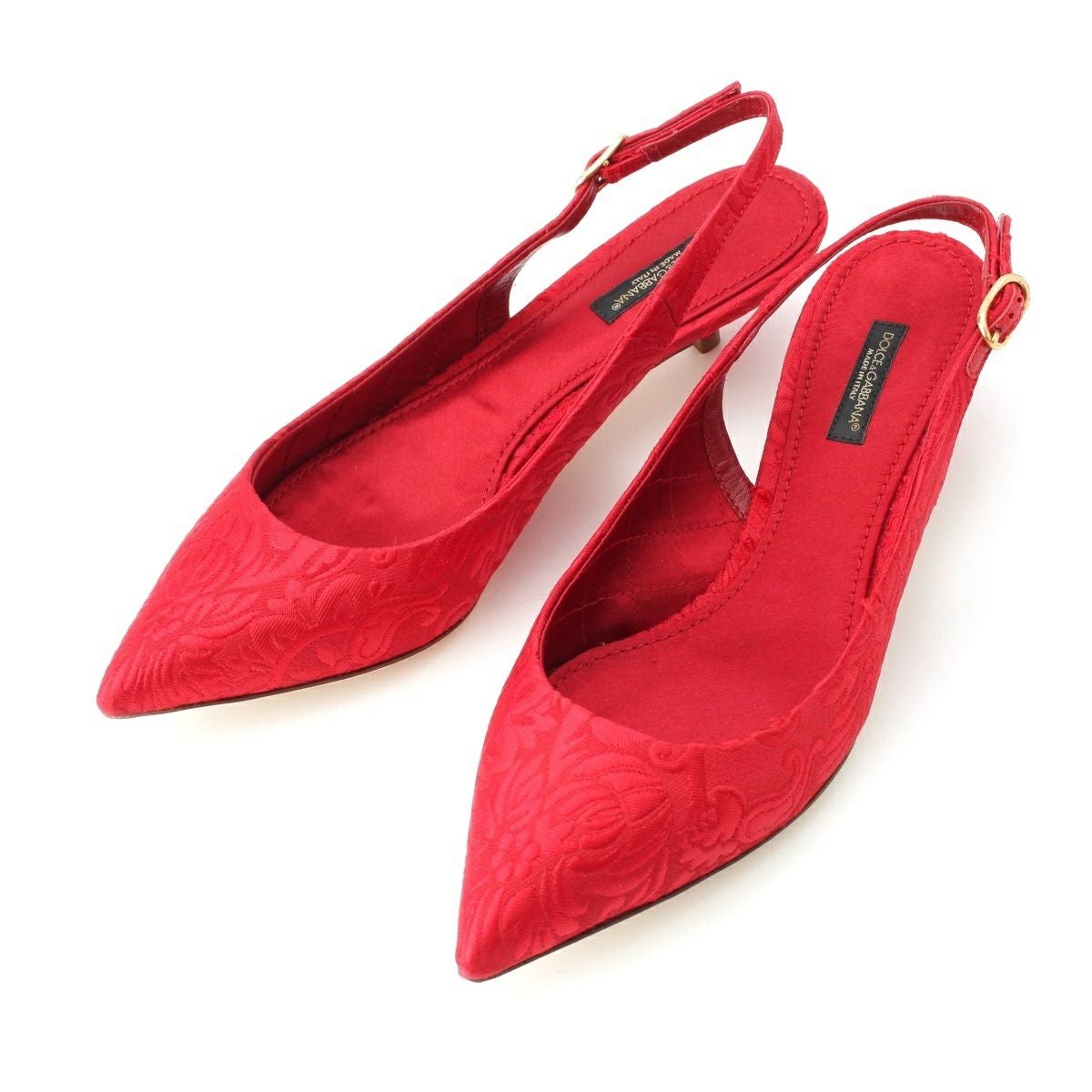 ドルチェアンドガッバーナ ファブリック バックストラップ 刺繍 パンプス レッド 38