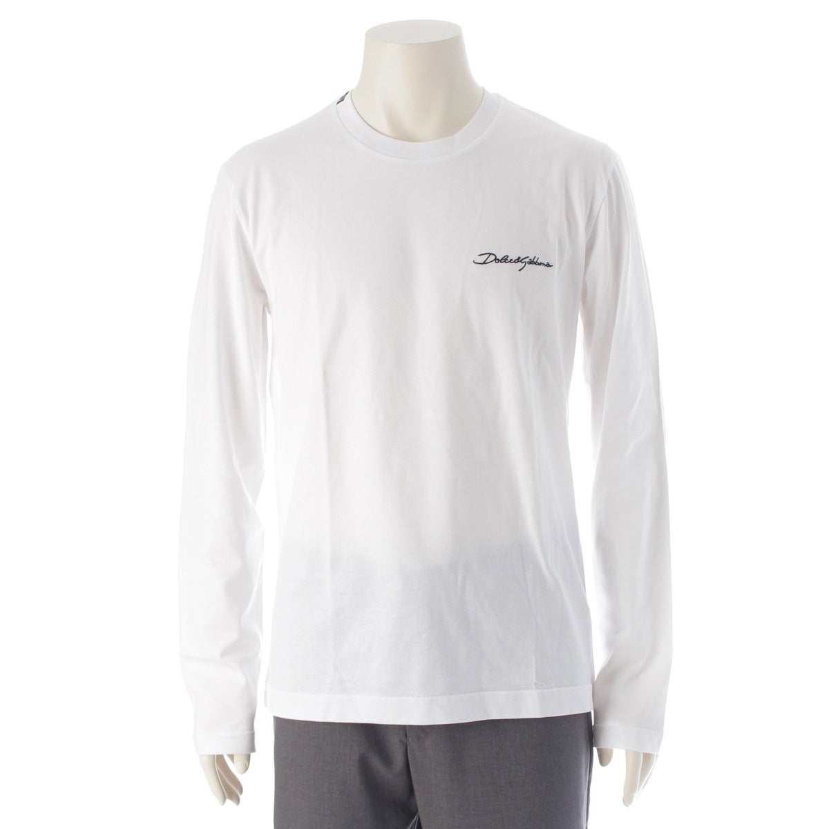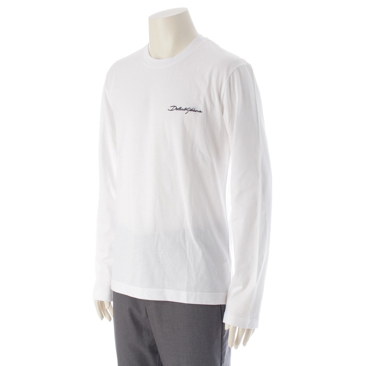 ドルチェアンドガッバーナ コットン ロゴ刺繍 ロゴパッチ 長袖Tシャツ ロングTシャツ トップス ホワイト 48