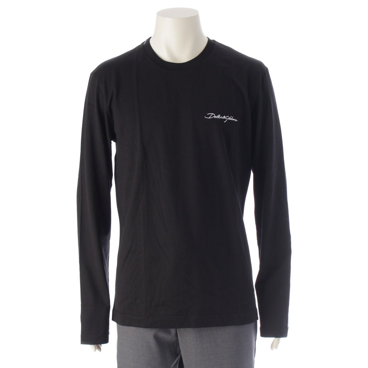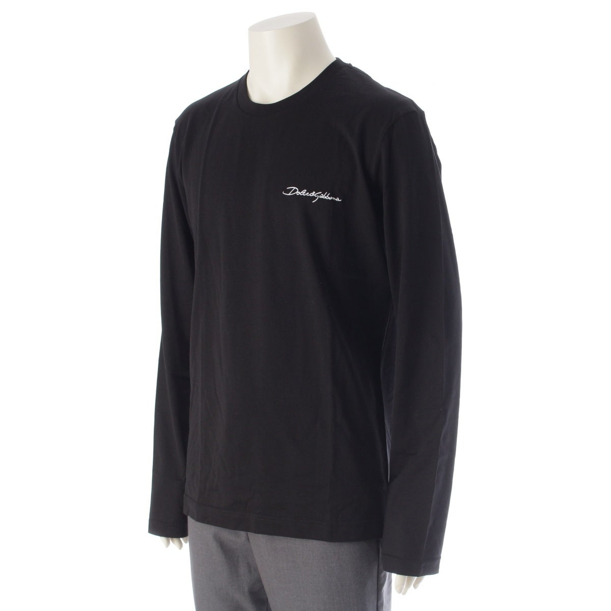 ドルチェアンドガッバーナ コットン ロゴ刺繍 ロゴパッチ 長袖Tシャツ ブラック 48
