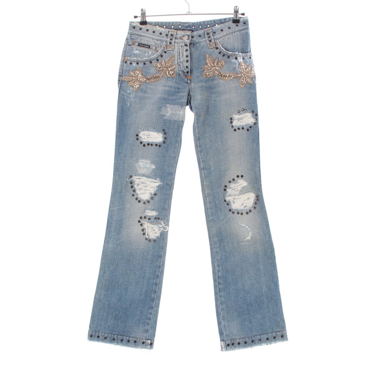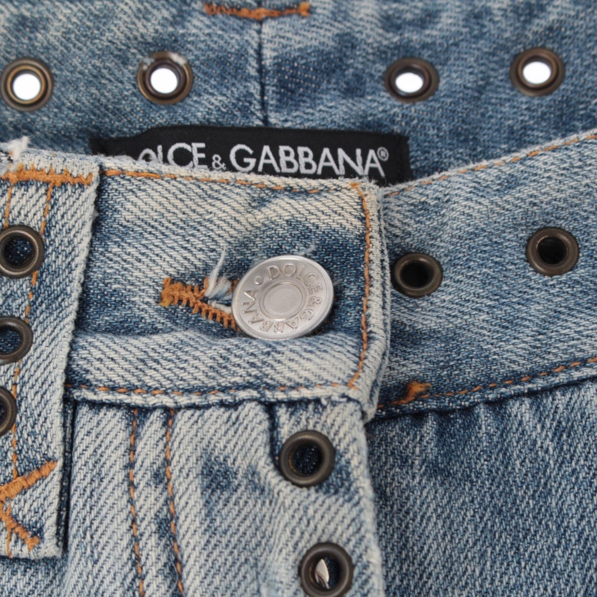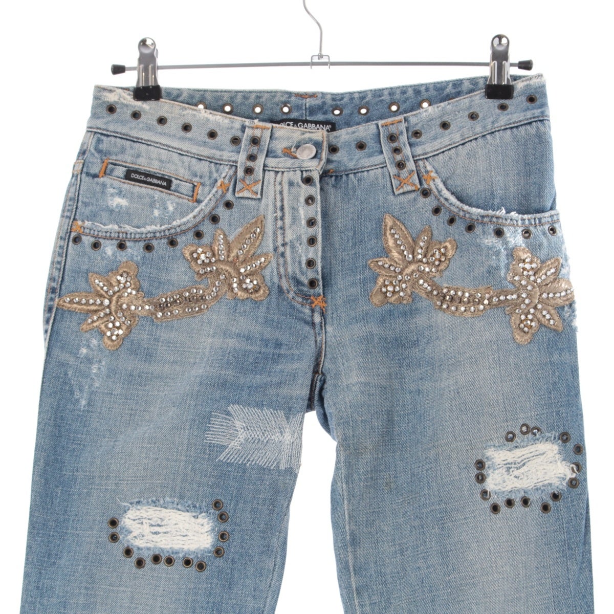 ドルチェアンドガッバーナ デニム スタッズ ラインストーン 刺繍 ジーンズ パンツ ボトムス インディゴ 40