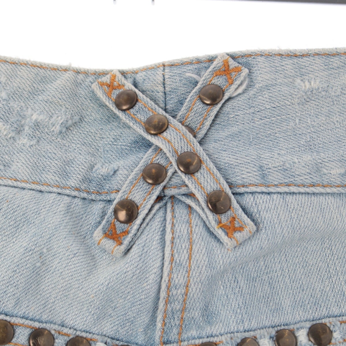 ダメージ箇所: 前身頃左足ステッチ:シミ汚れあり 前身頃右足上部:シミ汚れあり 後身頃左足上部:シミ汚れあり、