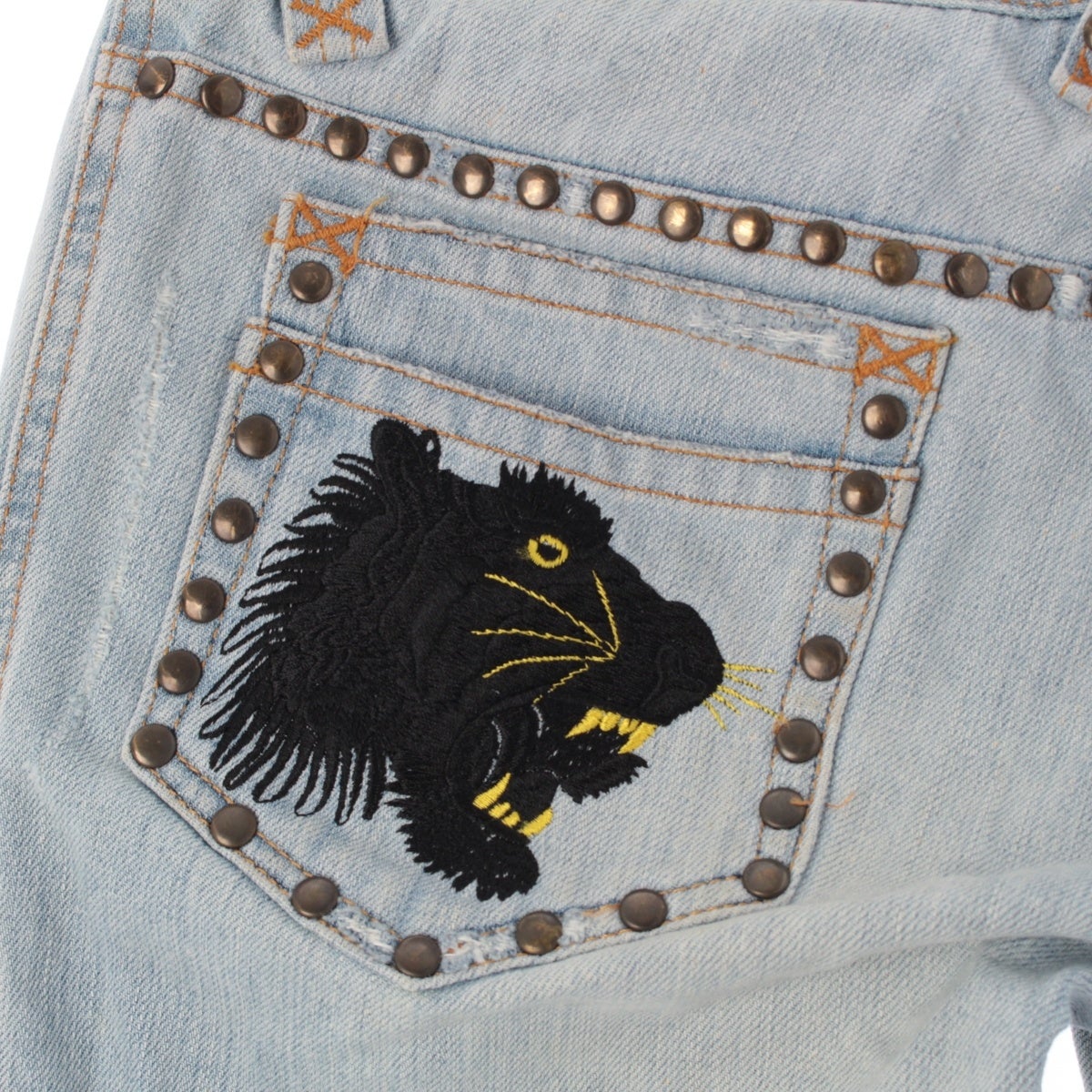 ドルチェアンドガッバーナ デニム スタッズ 虎 刺繍 ジーンズ パンツ ボトムス インディゴ 40