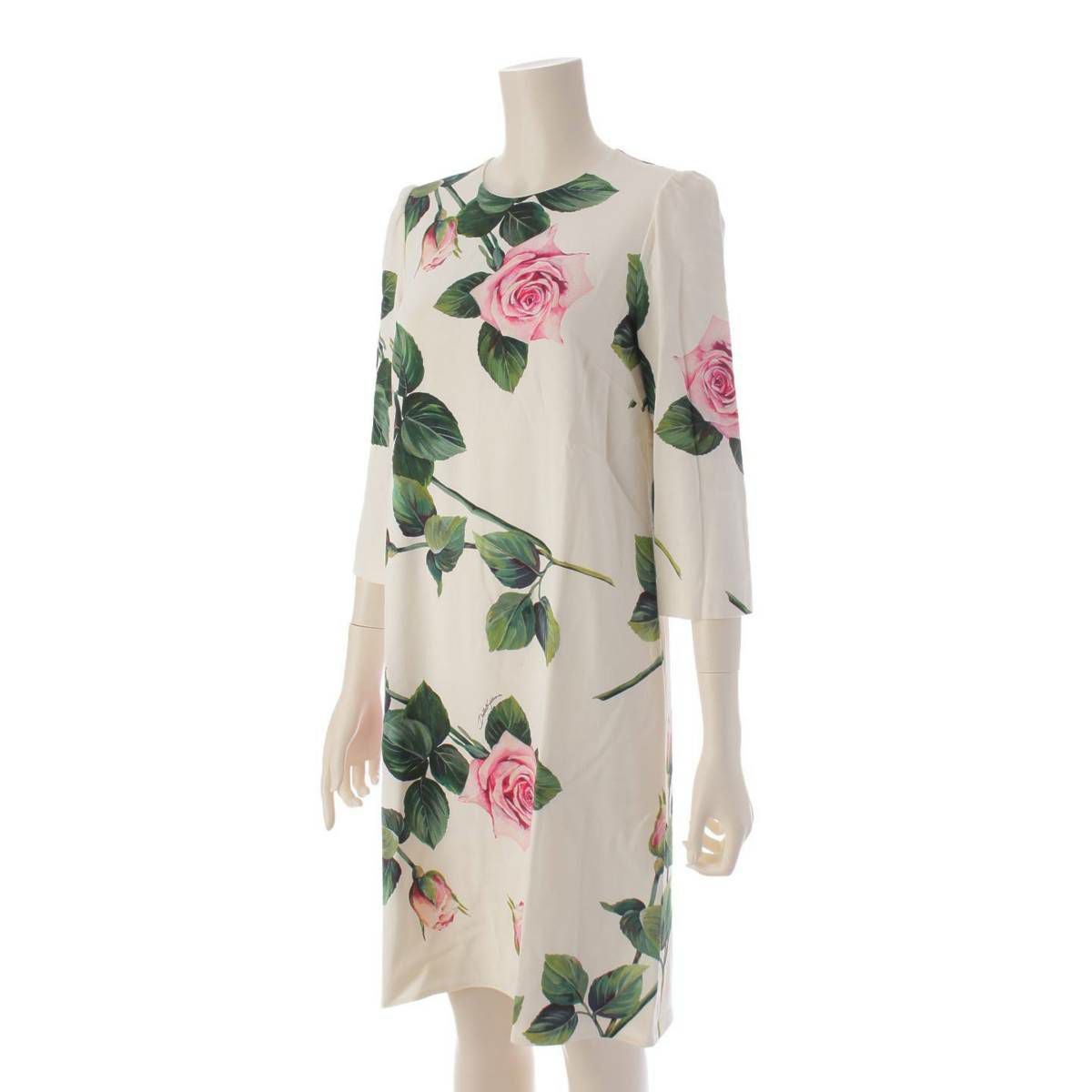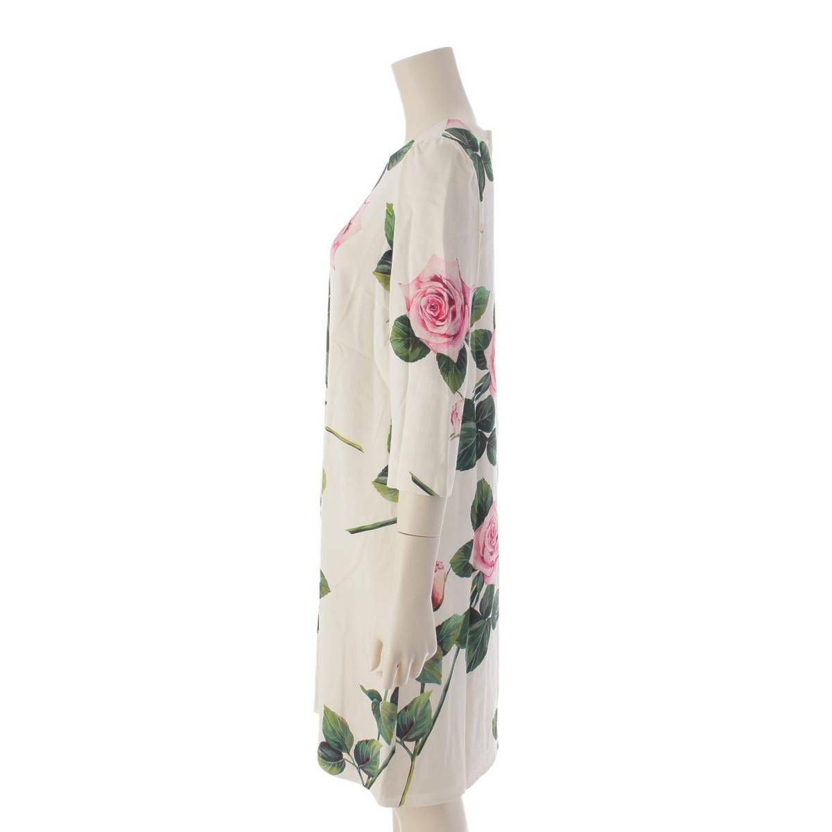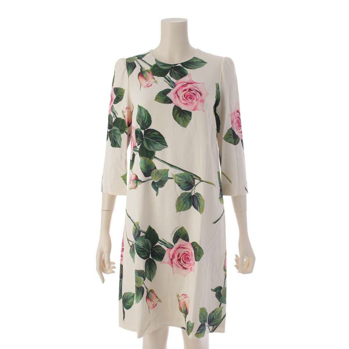 ドルチェ&ガッバーナ Dolce&Gabbana ローズ 薔薇 花柄 五分袖 バックジップ ワンピース ドレス F6G9JTFSRMB アイボリー 36