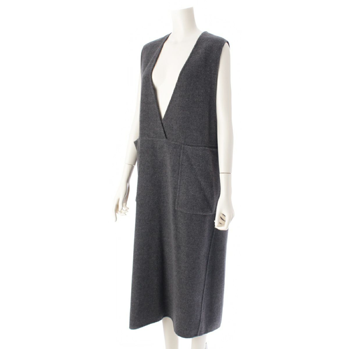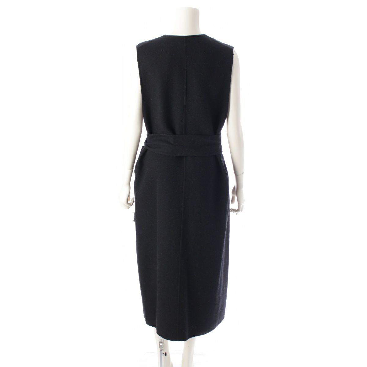 ドゥロワー 22年 ウール リバー Vネック ノースリーブ ワンピース ジャンパースカート 6526-234-1323 ブラック 36
