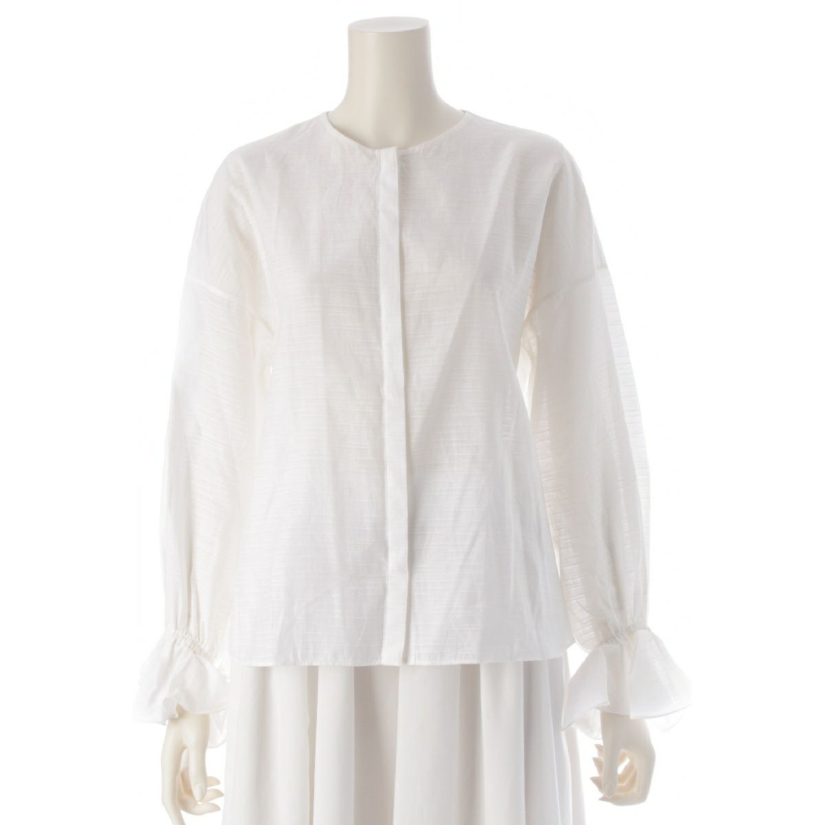 ドゥロワー RESORT2 コットン シルク フリルカフ 長袖 ブラウス トップス シャツ 6521-299-1075 ホワイト 36