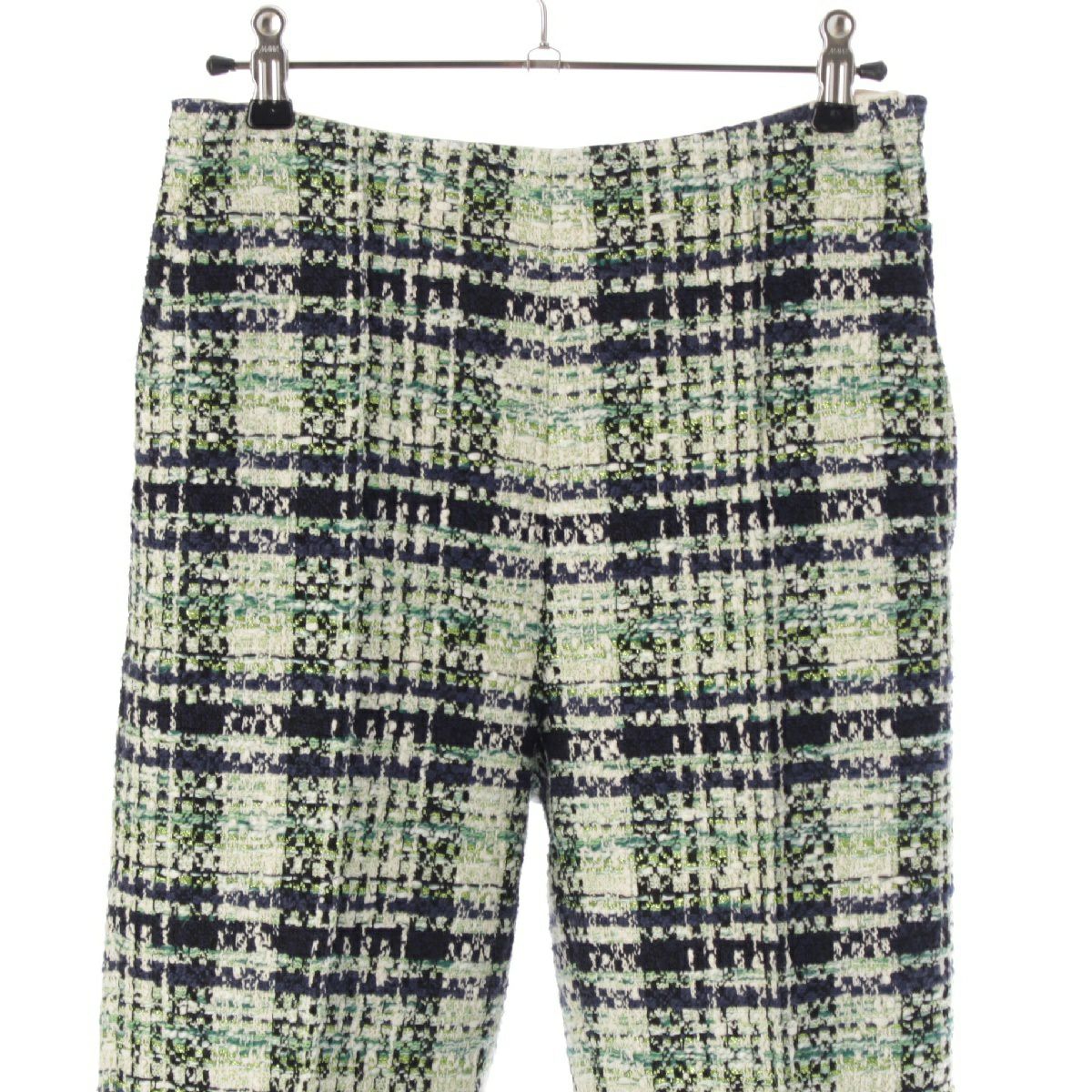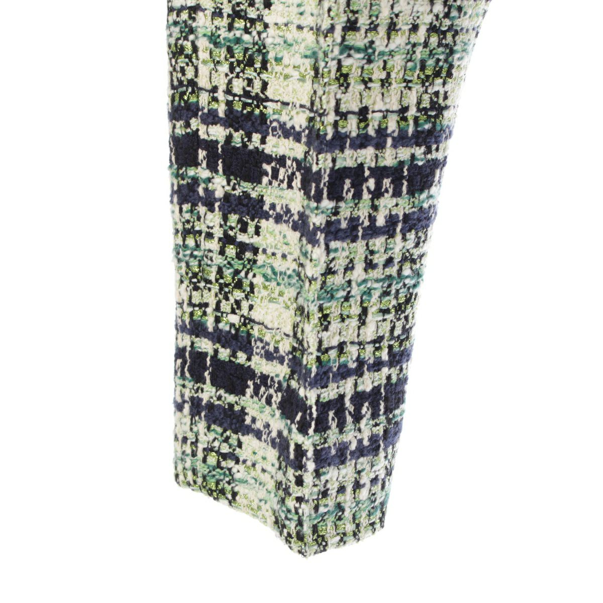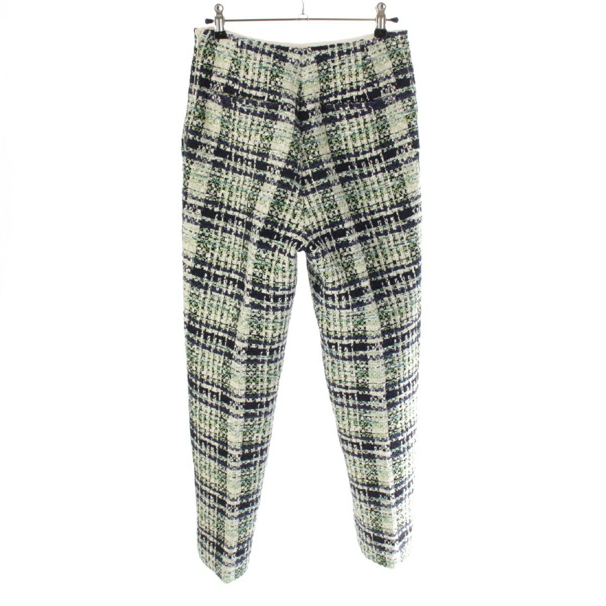 ドゥロワー 23年 コットン ナイロン混 ファンシーツイード ストレート パンツ ボトムス 6514-299-1296 グリーン ホワイト ネイビー 34