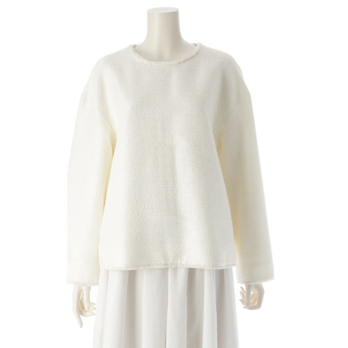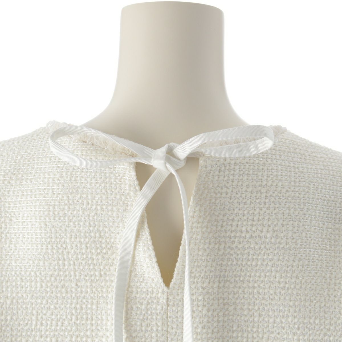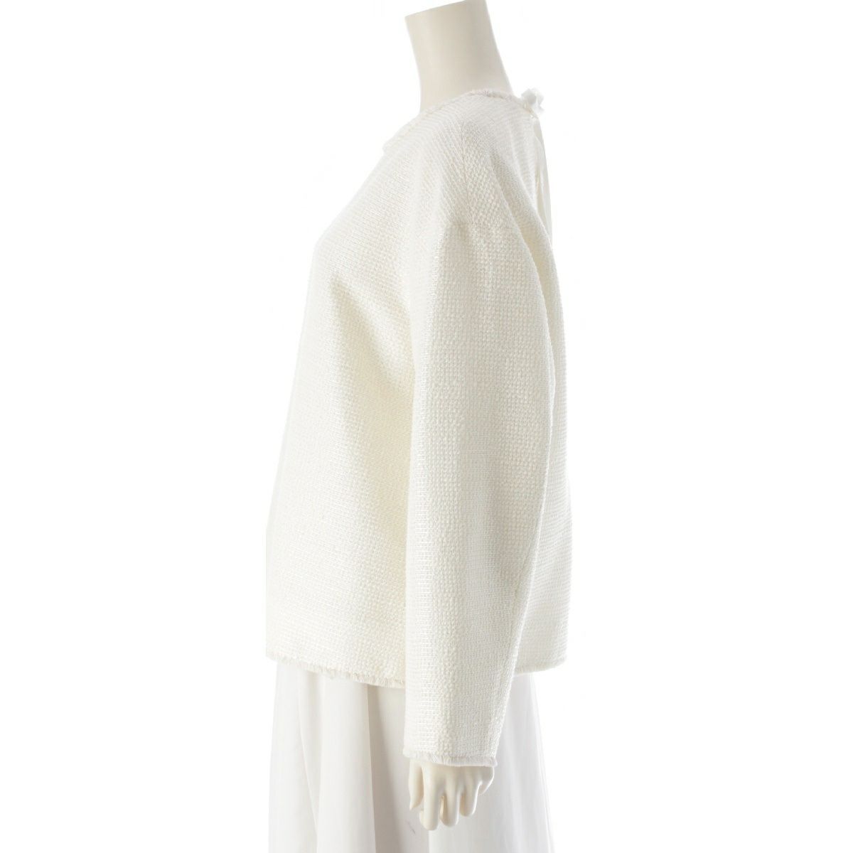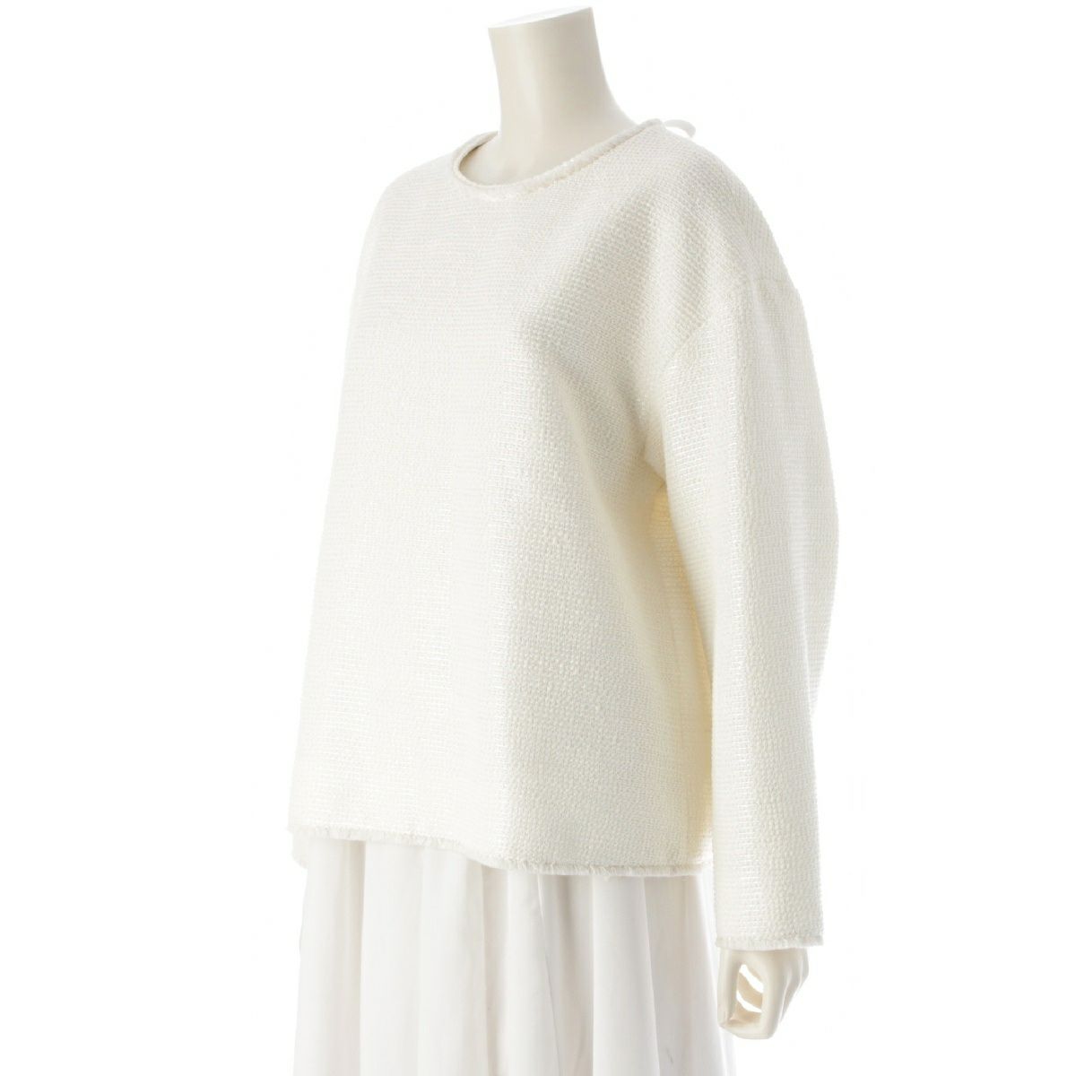 ドゥロワー WINTER2 ウール混 スパンコール バックリボン ブラウス トップス 6521-299-1241 アイボリー オフホワイト 36