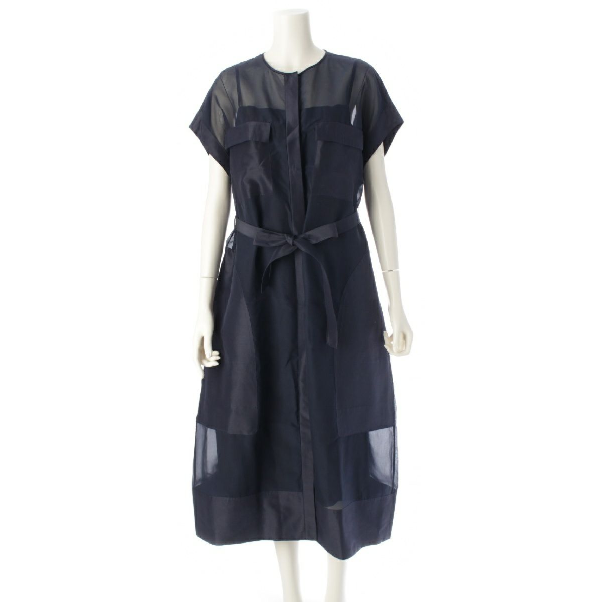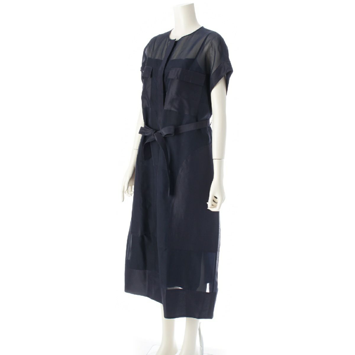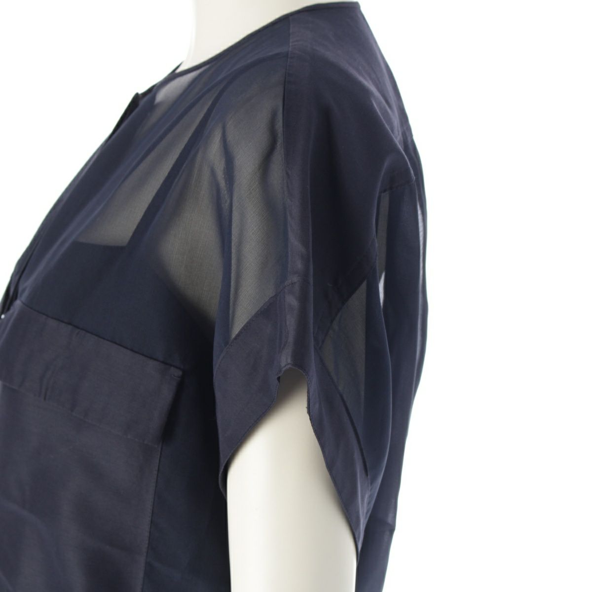 ドゥロワー 24SS シルク オーガンジー ショートスリーブ シースルー ワンピース ドレス 6526-299-1460 ネイビー 38